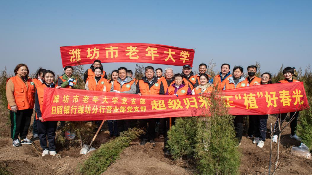 3月12日,日照银行潍坊分行营业部党支部联合潍坊市老年大学党支部前往潍城区明宗山开展“超级归来,正‘植’好春光”义务植树活动。此次植树节主题党日活动,是践行生态文明建设新理念的生动实践,营业部党支部将继续以实际行动彰显责任担当,以金融力量守护绿水青山。