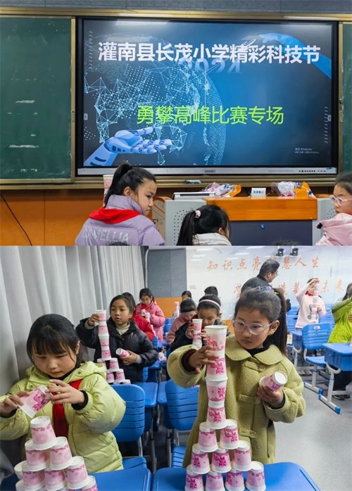 三年级开展了“勇攀高峰”垒高比赛。这次比赛对于三年级的同学们来说不仅是智力的比拼,更磨炼的耐心!