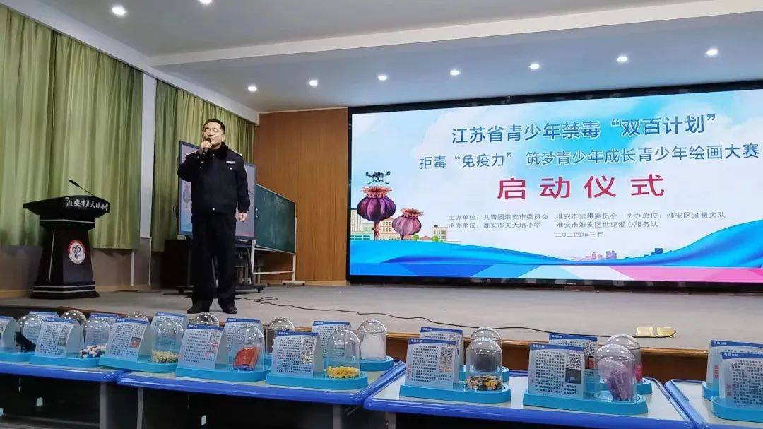 淮安区公安分局的张勇警官(同时也是爱心服务队的队长)开展了题为《远离毒品,健康人生》的禁毒知识讲座,他以通俗易懂的语言就毒品的危害、种类进行了介绍,提醒学生们新型毒品具有迷惑性、伪装性,引导他们提高自我保护意识,远离不良嗜好,谨慎交友,拒绝诱惑。