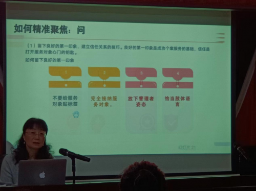 小组活动是社工工作中的重要环节,小组活动的讲解中,王晓燕副主任通过实例深入浅出讲解了如何设计和组织小组活动,如何引导和激发小组互动,如何进行小组评估。同时,她结合自己多年的实践经验,分享了一些实用的方法和技巧,帮助社工们更好地应对工作中的挑战和困难。项目的结项不仅是项目工作的结束,更是对项目成果的检验和评估。项目结项报告的撰写、项目成果的展示、项目效果的评估也是社工项目工作中必须掌握的能力,王晓燕副主任对此也进行了详细说明。