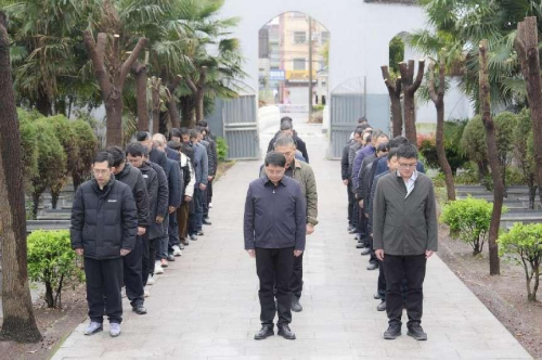 全体人员神情肃穆,整齐排列,静静伫立,在纪念碑前深深默哀。