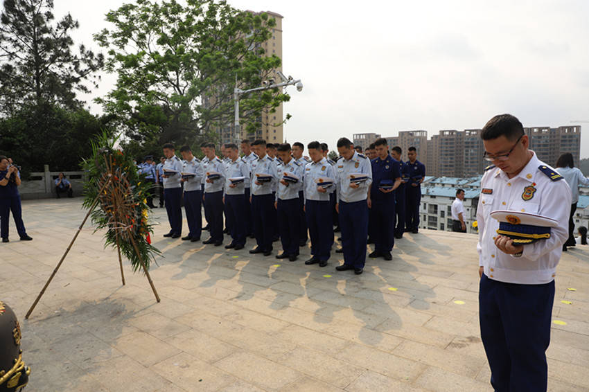 在支队二级督导员潘烁的主持带领下,全体人员队列整齐,集体向舍生取义、浩气长存的革命烈士致敬默哀一分钟,礼兵抬着花篮缓步行至纪念碑前,向革命烈士敬献花篮,全体人员向革命烈士三鞠躬,以此表达深切的缅怀之意和敬仰之情。随后,指战员们纷纷向烈士献上了菊花并依次瞻仰烈士纪念碑,向革命先辈致以崇高的敬意。