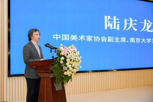 中国美术家协会副主席、南京大学美术学院副院长陆庆龙致辞 中国美术家协会副主席、南京大学美术学院副院长陆庆龙认为:“陈辉教授作为一名学者型画家,他的绘画将高超技法、深厚思想合而为一。他将光影融入到他的水墨画里,形成了独具一格的国画作品,在全国得到广泛赞誉。陈辉教授是值得我学习的老师,也是一辈子相处的亦师亦友的好画家。”