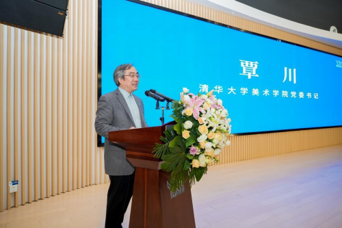 清华大学美术学院党委书记覃川致辞 开幕式上,清华大学美术学院党委书记覃川认为:陈辉教授的作品不拘一格,体现出对复杂世界非常深刻的关怀和理解。他的创作既有传统文化的继承、又有中西艺术的融合,更有创新和发展,展现了艺术与科学的相通性。祝贺陈辉老师的艺术创作取得非凡成果的同时,更感激他为学院人才培养做出的非常重要的贡献。感谢包括盐城市及江苏各地各界朋友对这次展览的大力指导、支持和帮助!”