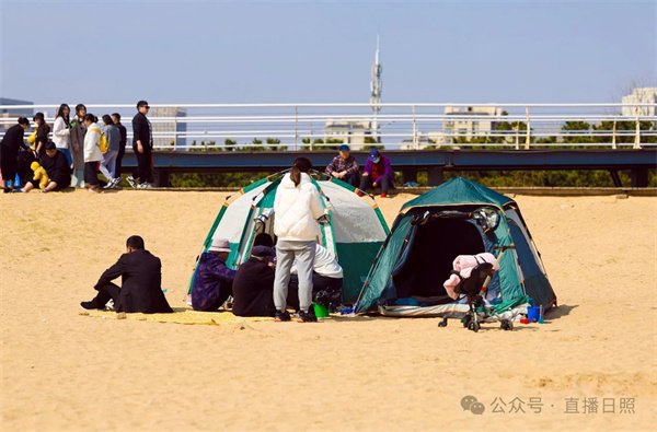 人群熙熙攘攘 有人低头拾贝 有人在海浪中嬉戏玩耍 有人则在沙滩上扎起帐篷