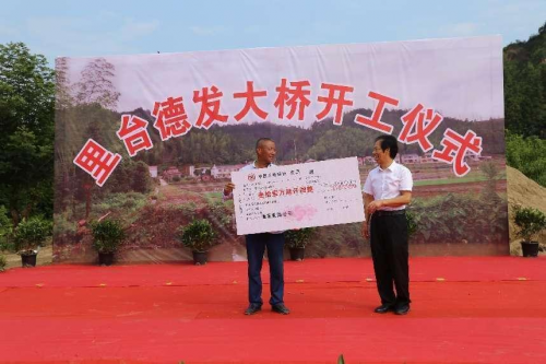 二、初心永不忘,使命肩上扛 实施乡村振兴战略,对于全面建设社会主义现代化国家和实现第二个百年奋斗目标具有全局性、历史性的重大意义。为支持家乡脱贫攻坚和乡村振兴,谭德发出资购买大量优质黄桃、柰李苗分送给村民们,并扶持农户大力种植,提供就业岗位600余个,带动300余农户创业脱贫。他致富不忘回报社会,积极热心公益事业,积极支持村级公益事业发展,捐资兴修村级道路。其捐资修建的德发大桥于2021年底建成通车,解决了村民出行、农资和农产品等物资的运输问题。短短几年,他为全县乡村振兴新修桥梁4座、新修拓宽村道2600多米、新建水渠4000多米、水坝6个等,合计价值300多万元。同时,谭德发的企业积极招收周边村民,提供就业机会,增加乡亲们的收入,助力当地乡村振兴战略实施。