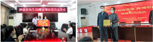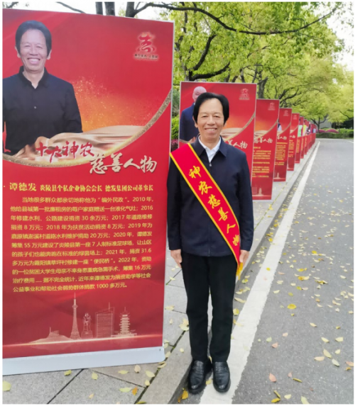 在炎陵,哪里有困难,哪里就有谭德发的身影。防疫初期物资紧张,谭德发组织员工四处联系,采购了价值5万多元的口罩、防护服等物资,送到抗疫一线,并三度捐资25万元。2016年,谭德发成立退伍军人为民服务志愿者协会,并带领协会志愿者们帮助抢险、开展为民服务活动已达360多次。2022年又出资80万元成立了关心关爱退役军人基金会。 迄今为止,谭德发为群众文化体育活动、社会扶贫济困、捐资助学、群众学雷锋活动、旅游景点建设等先后捐款捐物达1200多万元,被家乡人亲切地称为“编外民政”。正是这种无私奉献的精神和一心为公的品质潜移默化地影响着身边人,在他的带动下,亲友以及个私协会员纷纷加入志愿服务行列。