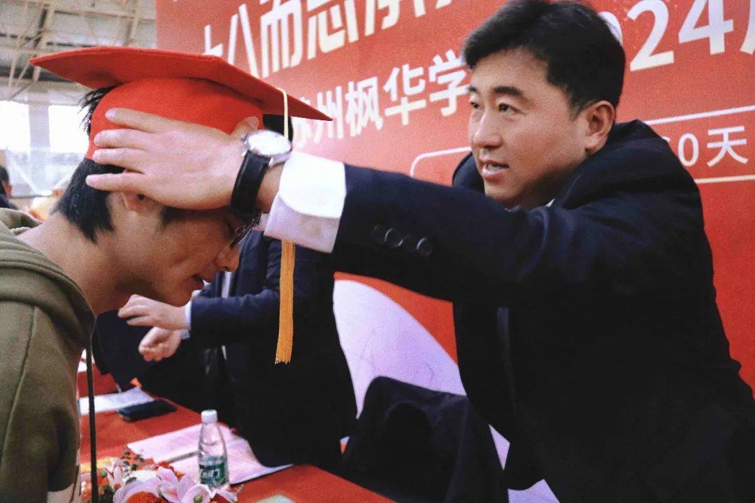 枫华学校总校长季希彦 同时,总校长也提醒我们要懂得感恩,珍惜身边的人和事。在未来的人生道路上,希望我们能牢记总校长的教诲,以积极的态度面对生活,以坚定的信念迎接挑战,以不懈的努力创造美好的未来。 Part 7 过“成人门” 仪式最后,神采奕奕的高三学子在校领导、老师的陪同下走过成人门、成才门,并签字留念。