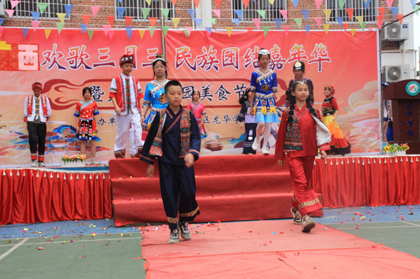 在这个特殊的节日里,南宁市西乡塘区龙华学校的师生们欢聚一堂,共同庆祝这个充满民族特色的节日。他们以热情洋溢的表演、丰富多彩的美食和精心准备的手工艺品,向世界展示了他们的才华和团结精神。这所学校将继续致力于弘扬民族文化,培养具有国际视野的未来一代。 以下是民族服装走秀现场: