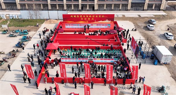 4月10日上午,山海天两城街道安家岭村举行安置楼分房仪式。187户村民翘首以盼,迎来了安置楼分房的日子,共有339套新居完成分配。