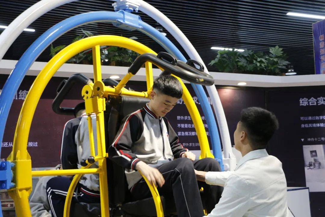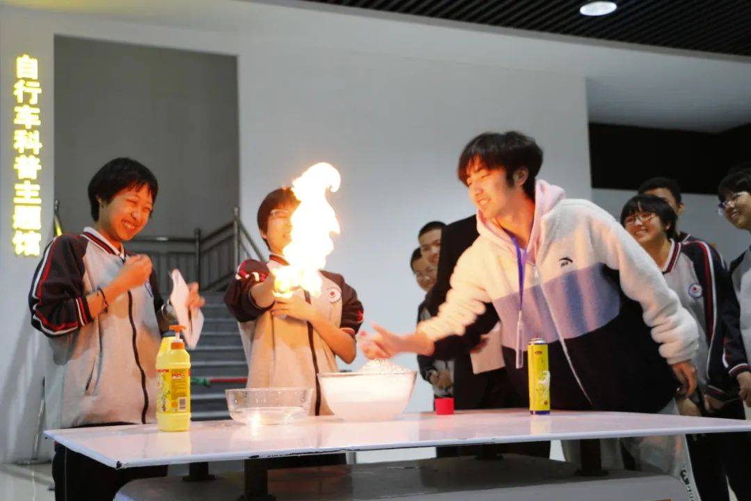 在不同的展览区域,各类科技元素展品琳琅满目,讲解员带领同学们陆续参观各主题区域并生动细致地讲解各个展品的原理。同学们沉浸在物理学、化学、人工智能及大国重器等科技展品的体验中,他们仔细观察现象,认真记录科技原理,积极参与各种互动。