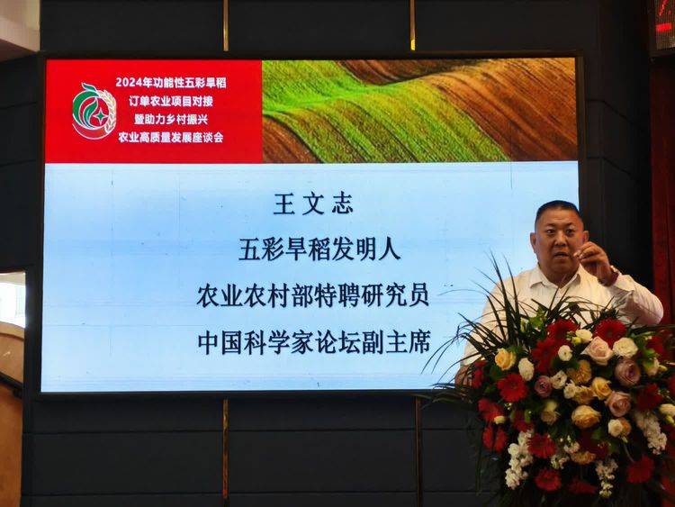 会上由功能性五彩旱稻发明人王文志先生向与会嘉宾介绍稻谷种植行业的重大发明、功能性五彩旱稻的有关种植方法及重大意义,共同见证可以像种小麦一样直播种植旱稻的重大技术革命。