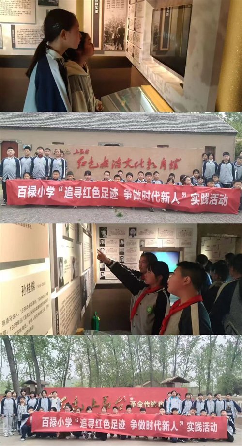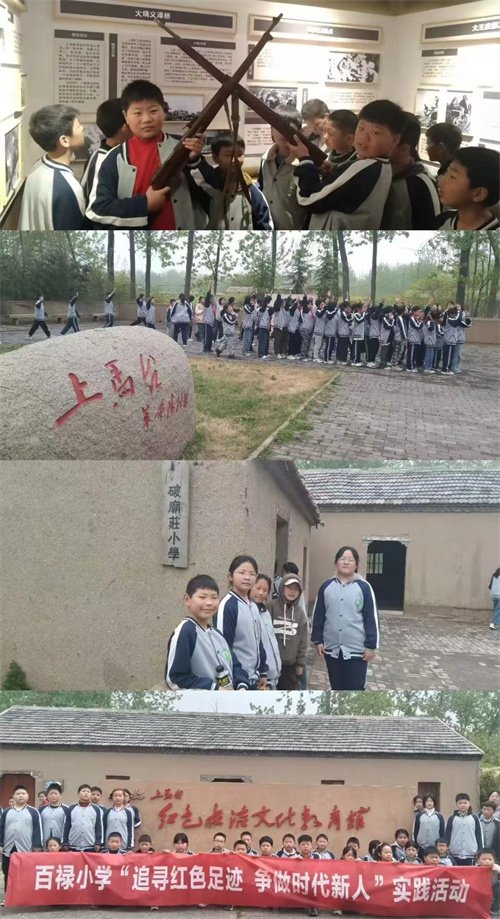 在上马台红色基地,百禄小学支部副书记岳磊给学生们介绍了诞生在红色基地的革命人物和革命故事,透过一张张照片、一件件展品、一段段故事,学生们深切感受到了当年革命先辈为了民族独立和人民解放事业前仆后继。