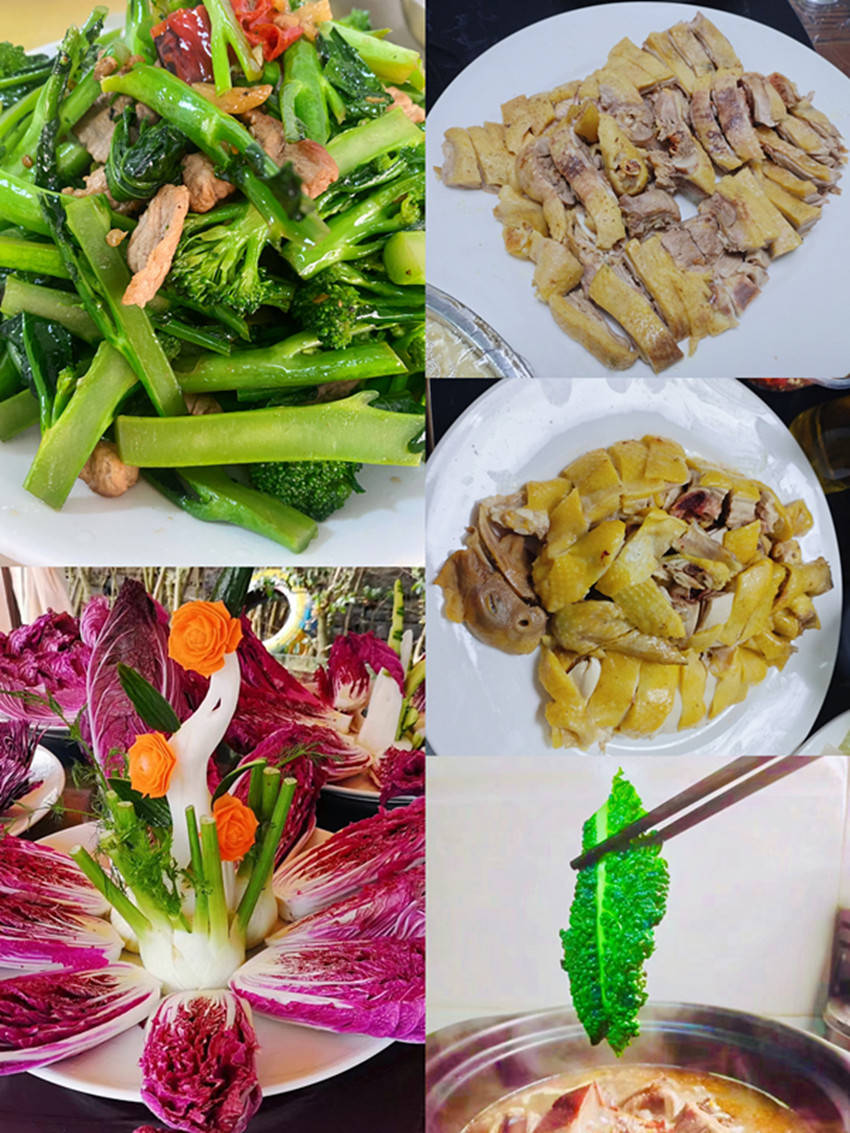 图为:品鉴小肽SOD鸡,小肽SOD鸭,西兰苔,维C菜等绿色,生态,功能食材。