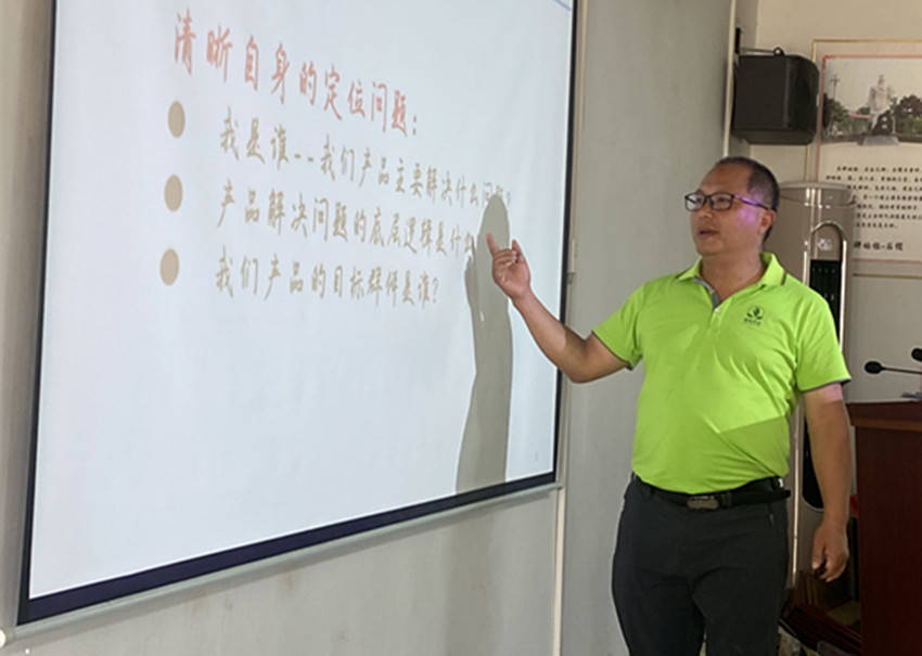 广西绿色农业运营部总监李勇做《业务拓展思维探讨》主题培训。