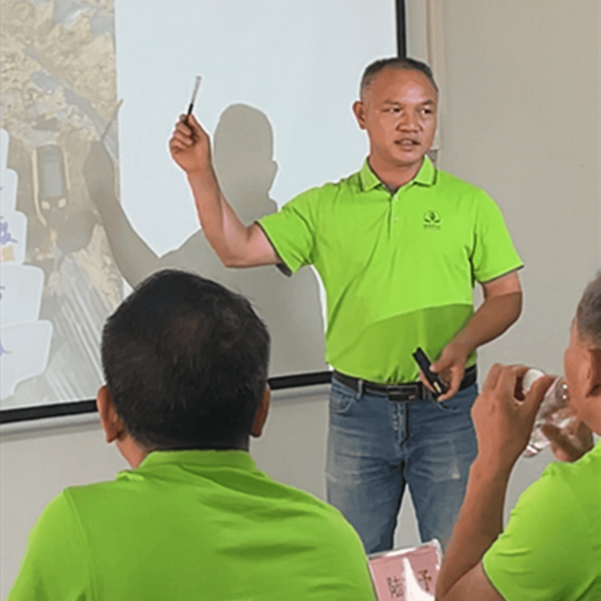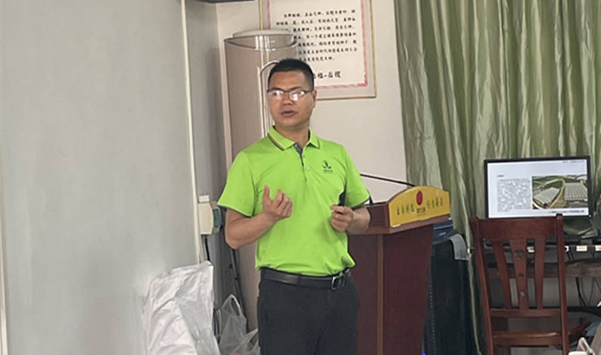 图为:广西绿色农业技术部主任做了《系列高新科技产品在农业运用的生产技术以及应用》培训。