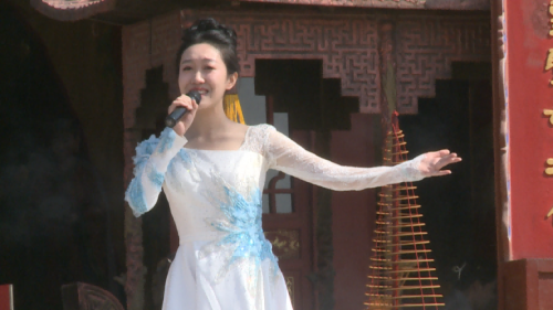 青年歌手任怡静为大典献唱了著名作曲家鹏来老师的力作《女娲补天》