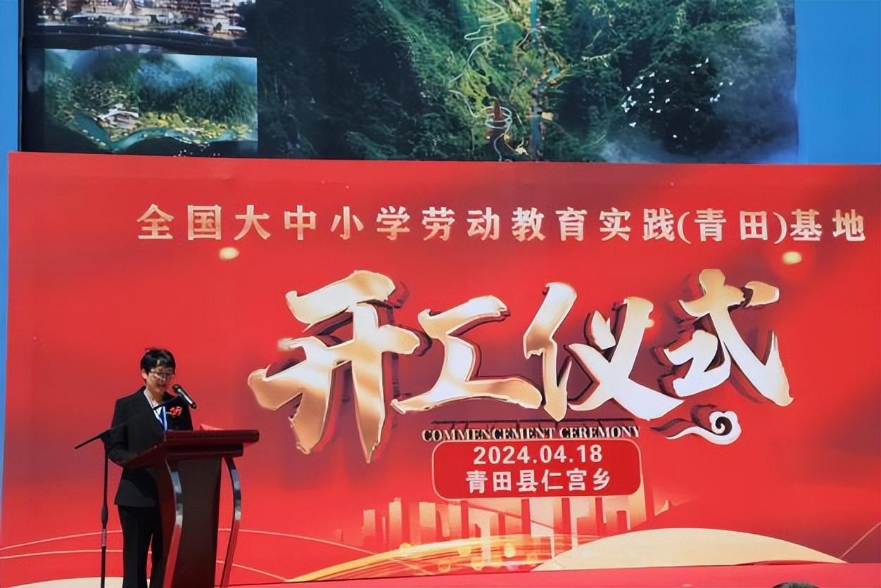 图为大中小学劳动教育综合实践基地(青田)基地开工典礼仪式现场。 开工典礼上,青田县农业农村局副局长周王书代表青田县农业农村局致欢迎词,欢迎大家莅临石雕之乡浙江青田,参加大中小学劳动教育实践基地青田基地的开工典礼,青田地处深山,却面对大海,胸怀世界,青田艺人世代践行“匠心精神”,点石成金,彰显大国艺术风采,青田华侨投石问路,成为了“一带一路”的先行者。青田也是两山理论的积极践行者,青田的田鱼享誉世界。青田努力在稻鱼共生系统的精彩实践中争当农耕文明传承的引领者,践行“推动中华优秀传统文化创造性转化、创新性发展”,为全球重要农业文化遗产保护和利用提供青田模式。 ![]()