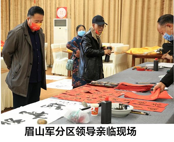 云南省军区原政委陶昌廉以及云南省军区原副司令张志军在现场展示了他们的书画作品,赢得了在场嘉宾的高度赞许。眉山军分区领导和市退役军人事务局领导也亲自到场表示祝贺。
