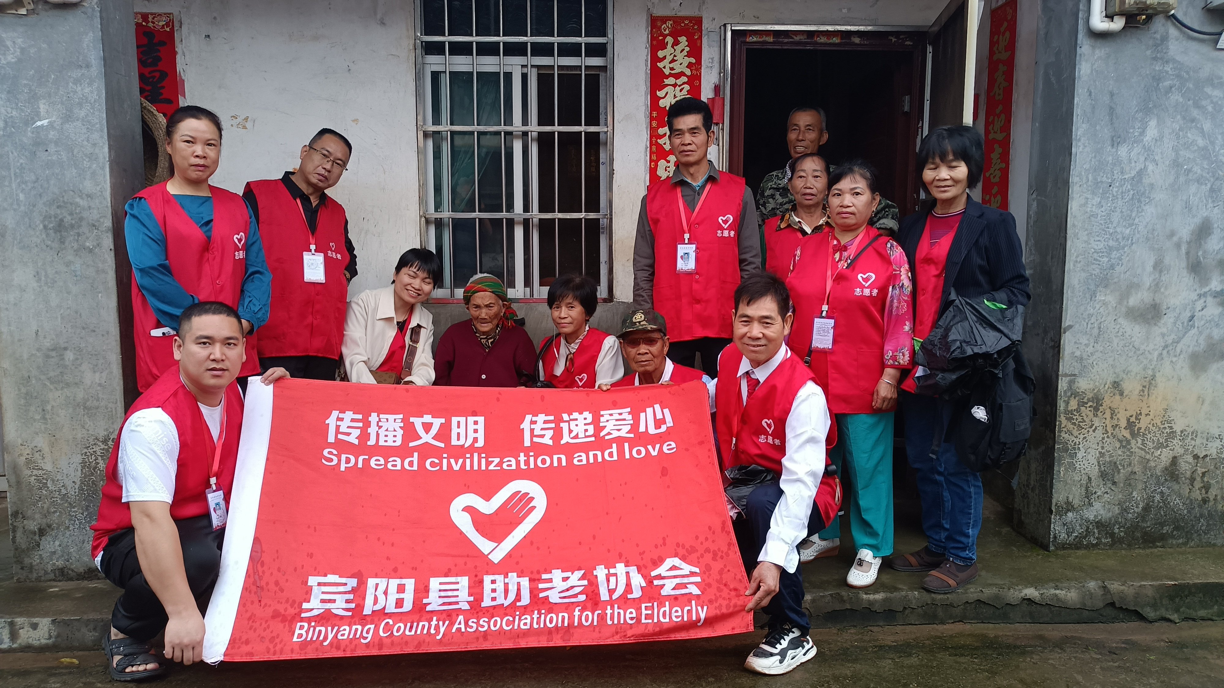 黎塘镇人民政府干部:陈思伟,带领宾阳县助老协会在黎塘镇农业村105岁老人:黄钦儒(老爷爷),由于下午时间去到老人家的时候,老人在午休,就没有看见老人。