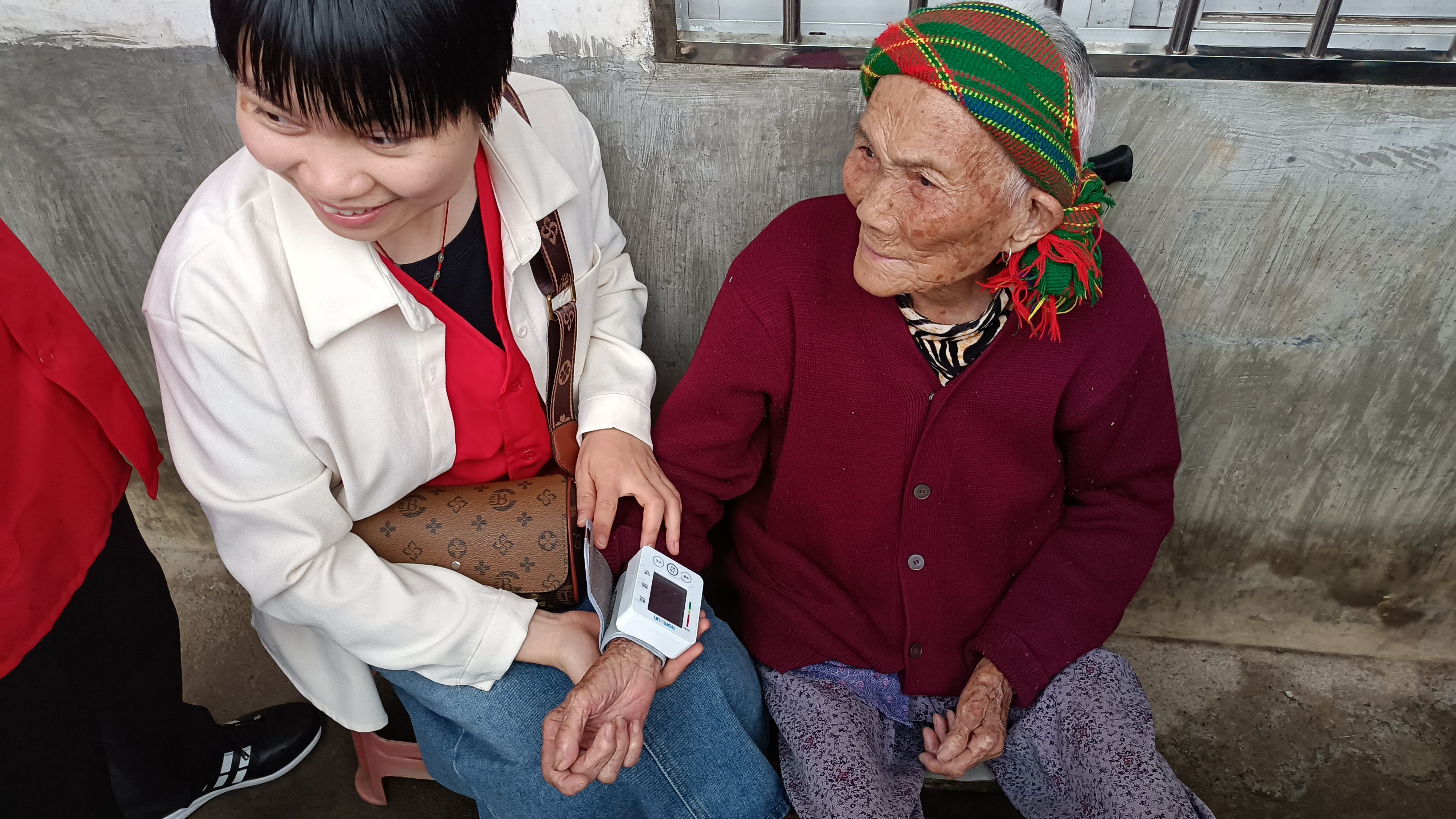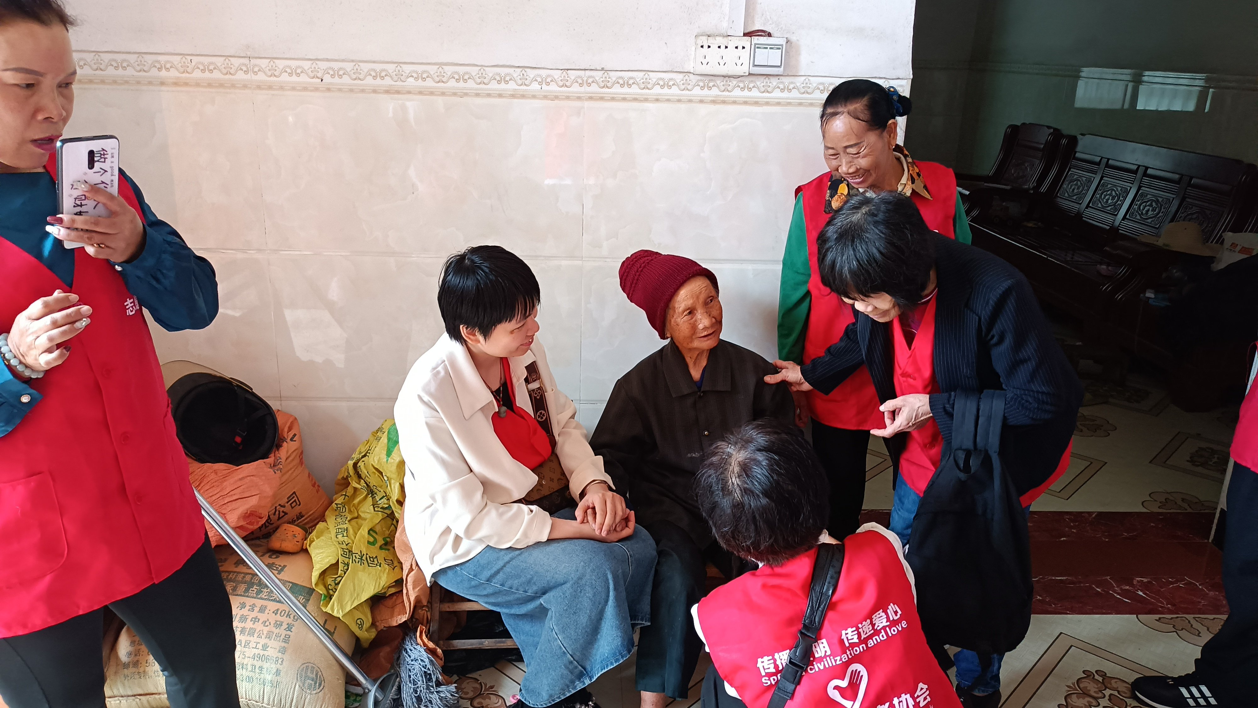 黎塘镇人民政府干部:陈思伟,黎塘镇吴江村委干部:吴耿,带领宾阳县助老协会在黎塘镇吴江村委局塘村,看望105岁老人,老人身体状态:生活不能自理。