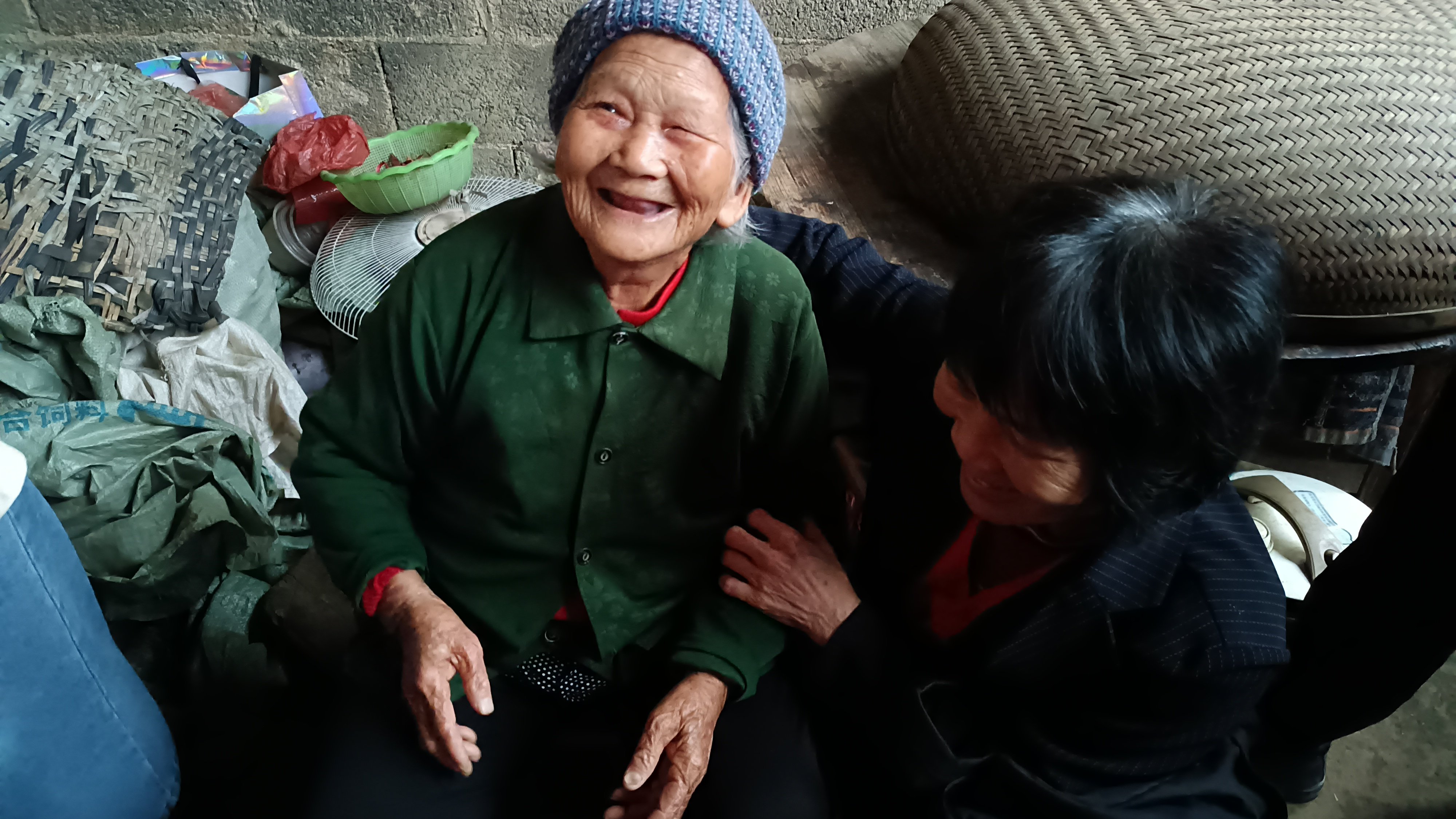 在黎塘镇吴江村委局塘村看望103岁老人:覃进云(老奶奶),五世同堂没有领取国家高龄补贴400元,老人身体状态:腿脚不利索,眼睛能看见,耳朵有点聋。村委干部每月去看望老人,子女孝顺,老人心态好,笑容好。