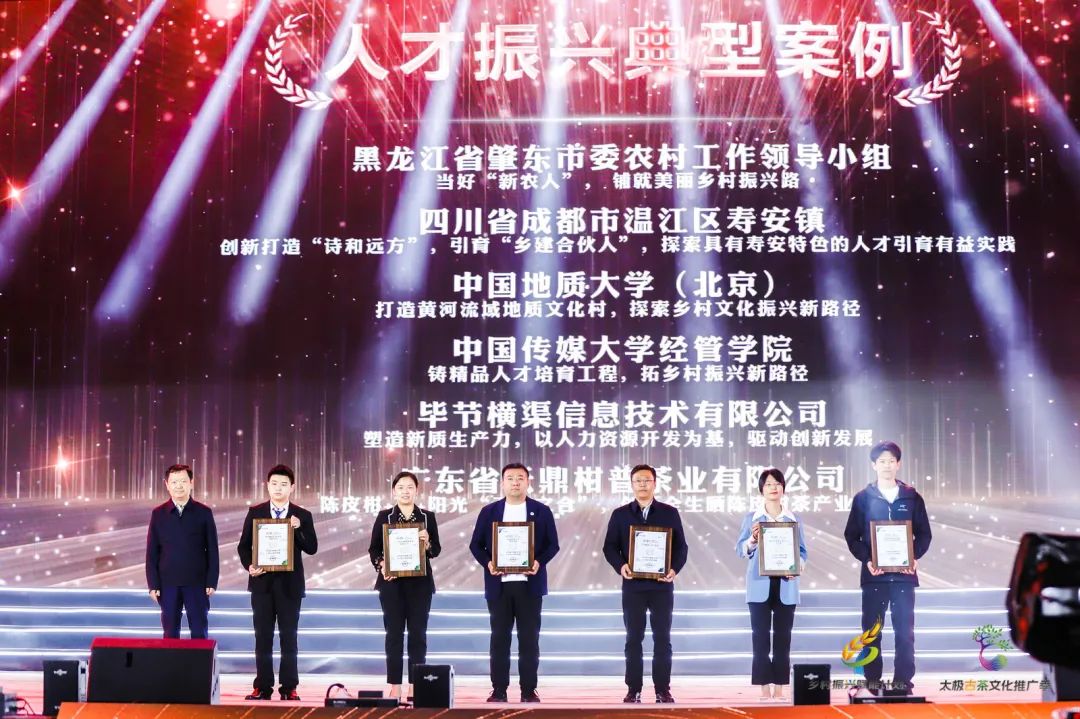 ![]() 名企当先,品牌赋能 农业农村部农村社会事业发展中心 副主任张海涛 为名企助农典型案例推介 并为6个典型案例授予荣誉 ![]() 城乡统筹发展研究中心主任谢华平 为品牌兴农典型案例推介 并为4个典型案例授予荣誉 ![]() 中国乡村发展协会 乡村文化振兴委员会副主任、 中国农业出版社原副总编辑李耀辉 为社会责任典型案例推介 并为4个典型案例授予荣誉 ![]() 拼搏路上,名企当先 品牌当空,星光璀璨 这些案例们在振兴路上齐头并进 共筑乡村振兴美好家园 一首优美动听的歌曲《绿水青山我的家》 唱出了山明水秀、鸟语花香的意境 第二篇章 产业腾飞·科技兴农 品牌赋能,让农产品变得不平凡 科技提升,让粮食丰产“成色更足” 科技兴,五谷兴,乡村兴 在毕节七星关 我们看到了乡村振兴的壮美画卷 科技兴农的种子在这里生根发芽 开出了绚烂的花朵 通过一段短片《富饶七星·丰收未来》 在场观众一起聆听了 七星关意味绵长的丰收故事 在这个热闹非凡的夜晚 荣耀盛典还进行了一场 产业丰收大检阅 太极古茶方阵、毕节刺梨方阵、 滦南米业方阵、毕节酒方阵、 益海嘉里方阵、毕节天麻方阵、 泽牧久远方阵、毕节食用菌方阵 他们带着当地特色美食徐徐走来 大家报以热烈的掌声 和震耳欲聋的欢呼声 ![]() 现场观众都热情地互动着 在抽奖环节胜出的幸运观众 还获得了刺梨原液、菌汤包、太极古茶等 珍贵的特色美食! ![]() 产业腾飞,科技兴农 中央农业广播电视学校副校长、 中国农民体育协会副秘书长王桂林 为产业振兴典型案例推介 并为10个典型案例授予荣誉 ![]() 中国乡村发展协会 乡村文化振兴委员会主任、 中国农业出版社原党委书记、 董事长、社长孙林 为科技强农典型案例推介 并为3个典型案例授予荣誉 ![]() 乡村振兴,步伐铿锵 这些案例有着比石头更硬的决心 比大山更高的信念 星光大道年度总冠军石头也来到现场 为大家带来歌曲《雨花石》 ![]() 上海农林职业技术学院、南通大学 以毕节百里杜鹃为构思背景 精心创作了一幅《鹤舞杜鹃》图 献给本次活动的组委会 《鹤舞杜鹃》的原创作者、 上海农林职业技术学院苍鹤老师 上海农林职业技术学院 数字经济系与创意系主任路以兴老师 解说员赵璐老师 登台展示、解读这一作品 中国农业电影电视中心党委委员、 副主任欧阳海洪 中国农影运营中心主任、 乡村振兴赋能计划组委会秘书长 上官王强 上台接受捐赠 ![]() 在毕节 有首大家耳熟能详的歌曲 “乌蒙山连着山外山 月光撒下那响水滩” 《奢香夫人》这首歌 唱出毕节的大美景色 也让大家感受到了毕节的繁荣昌盛 ![]() 第三篇章 文才兴邦·助农先行 乡村振兴 既要塑形,也要铸魂 毕节历史悠久,人文荟萃 红色文化、民俗文化、民族文化 三大名片熠熠生辉 演员王丽云和一位小演员 为大家献上 情景文艺节目《文化里的毕节》 生动形象地演绎了七星关的文化 ![]() 农民日报社原社长、 中国乡村振兴学院秘书长唐园结 为人才振兴典型案例推介 并为6个典型案例授予荣誉 ![]() 国家市场监管总局登记注册局 原局长杨红灿 为文化振兴典型案例推介 并为8个典型案例授予荣誉 ![]()
