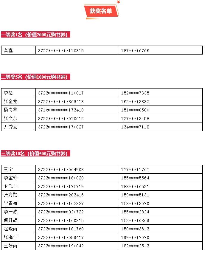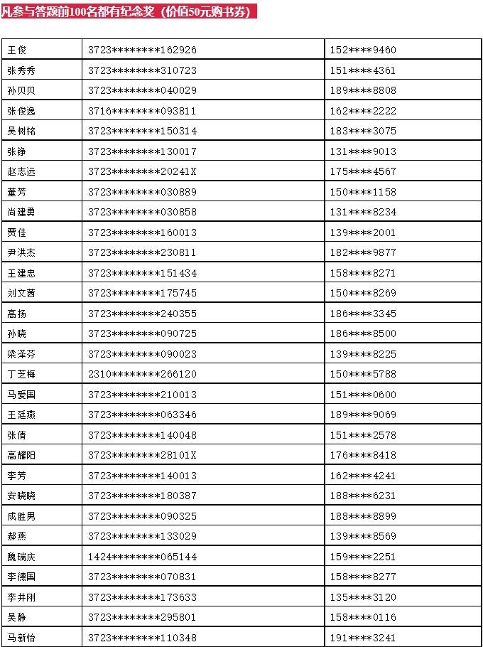 奖项设置 一等奖1名(价值2000元购书券) 二等奖5名(价值1000元购书券) 三等奖10名(价值500元购书券) 凡参与答题前100名都有纪念奖(价值50元购书券) 领奖时间及地点 获奖人员持本人身份证于2024年4月25日—5月10日工作日到滨州市文化市场综合执法大队405室(黄河十一路825号)领取购书券。 |