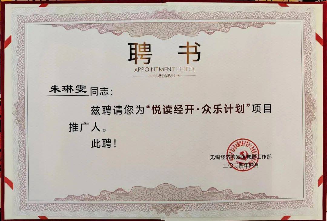 作为“悦读经开·众乐计划”的推广人之一,朱琳雯女士表示,她将充分发挥自己在文化领域的优势,积极推广阅读文化,引导更多的人爱上阅读、享受阅读。她希望通过自己的努力,让更多的人了解传统文化的魅力,感受书香经开的浓厚氛围。