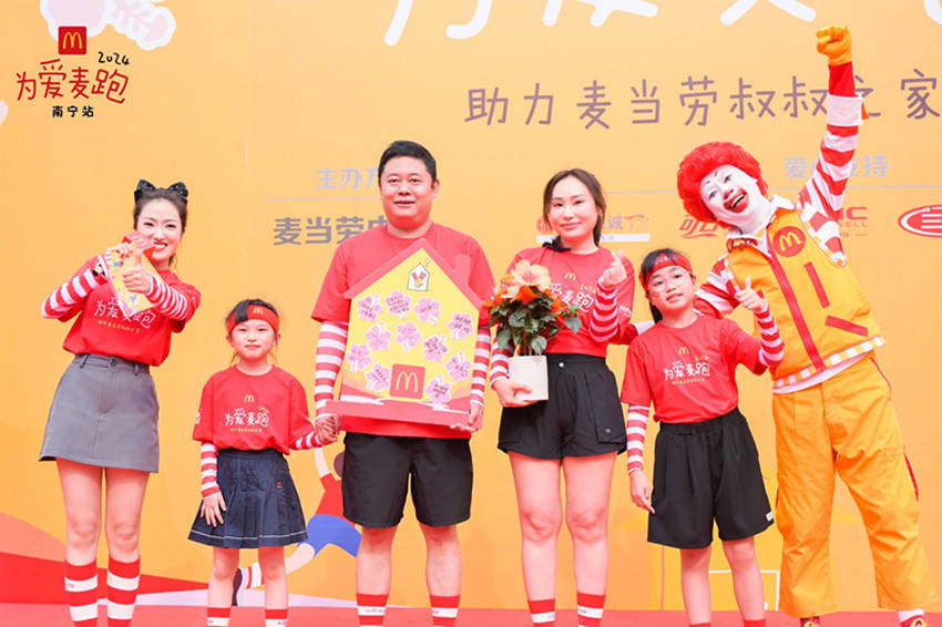 4月27日, 由麦当劳中国主办的第八届“为爱麦跑”活动今日在南宁市青秀区南湖公园欢乐开跑。本届“为爱麦跑”有近2.5万个家庭报名,汇聚近6万名参跑者的公益爱心。活动募集的善款将汇入“中国宋庆龄基金会麦当劳叔叔之家慈善基金” (以下简称“中国麦基金”),用于麦当劳叔叔之家实体公益项目的运营和建设。