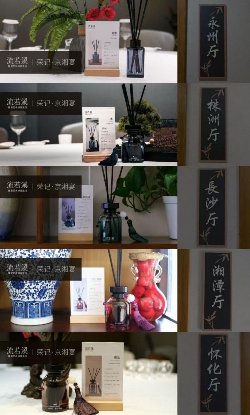 荣记·京湘宴:完美融合,共筑辉煌 作为“流若溪”餐饮渠道新模式的首秀舞台,荣记·京湘宴以其优越的地理位置、丰富的菜品选择及高品质的服务,为“流若溪”香薰的展示提供了绝佳的平台。餐厅内,湘菜的香辣、水饺的温馨、海鲜的鲜美与“流若溪”香薰的淡雅相互交织,共同编织出一幅幅令人陶醉的美食与香氛画卷。而凯宾酒店作为背景,其准四星级的标准与完善的配套设施,更为这场跨界合作增添了无限光彩。