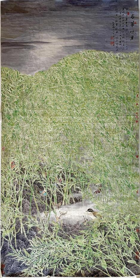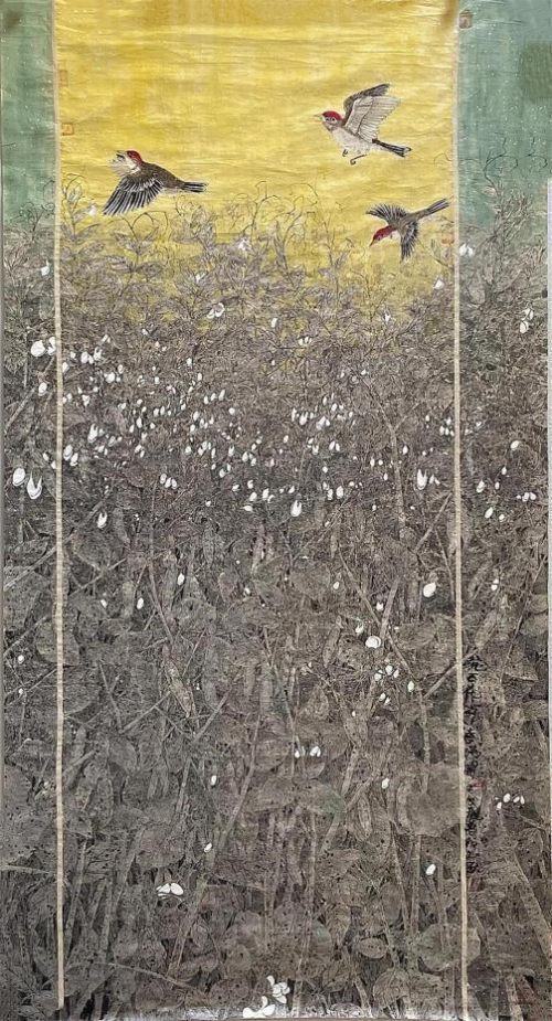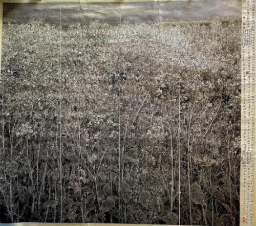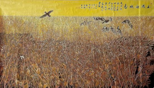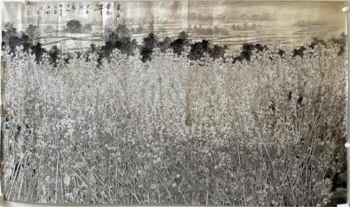 令我们赞赏的是,龙万和的工笔花鸟画——油菜花系列作品,显示了他 善于以技入境的创作能力和艺术感觉。画家选择油菜花为创作主题,本 身就是个性化的表现,他不去画各花珍品,他不套用既定法度与规范, 而另辟蹊径,以“我用我法” 的精神,建构了属于自己的形式、语言系统, 几经磨砺、几经成败,终于使其以油菜花为题的工笔画作品趋于成熟, 他的这批作品别开生面,气息清新。 以油菜花系列作品为代表,龙万和的艺术思考与艺术实践,体现了他驾 轻就熟的艺术把握能力和艺术处理能力,这就是他以当代文化的高度, 去面对自然,以及从自然中提取的素材,他并未去还原自然的真实,而 是在删繁就简中有所选择,把“实写”与“虚写”结合起来,运用智慧和诗 心掌握技法,使物性的工笔技法为营造诗境服务。
