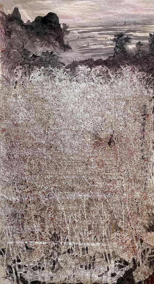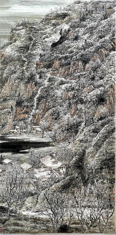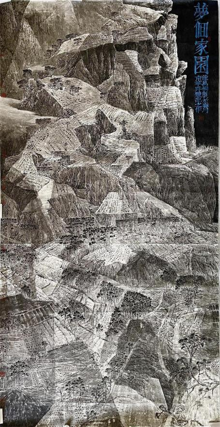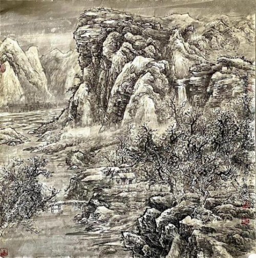 龙万和的山水画,从“ 四王”入手,颇得前人笔墨之神韵,但他并未如其 他人那样,泥古不化,他依然尊重自己的感觉和自己的发现,用墨色、 点线表达自己的“诗心”;在画家这里,山水画同样是他较为看重的创作 侧面,在山水中他传达的是生生不息的自然生命节奏和律动。而且, 他 笔下的山水往往取自熟悉的西南故乡,他把“熟悉的”景象,在画面中转 换为“ 陌生的”景象,他把寻常风光转换为“诗意的”万象;因此,龙万和 的作品和他不断丰盈的诗心,在紧密地联系着自然、现实与诗意中,达 到了新的高度和新境界,让我们领略到变革时代的新的审美精神与情怀。 龙万和告别了沉郁孤寂的思考阶段,怀着一腔诗心,自信地创造着艺术 与生命的未来。 (徐恩存,著名美术评论家,《中国美术》主编)