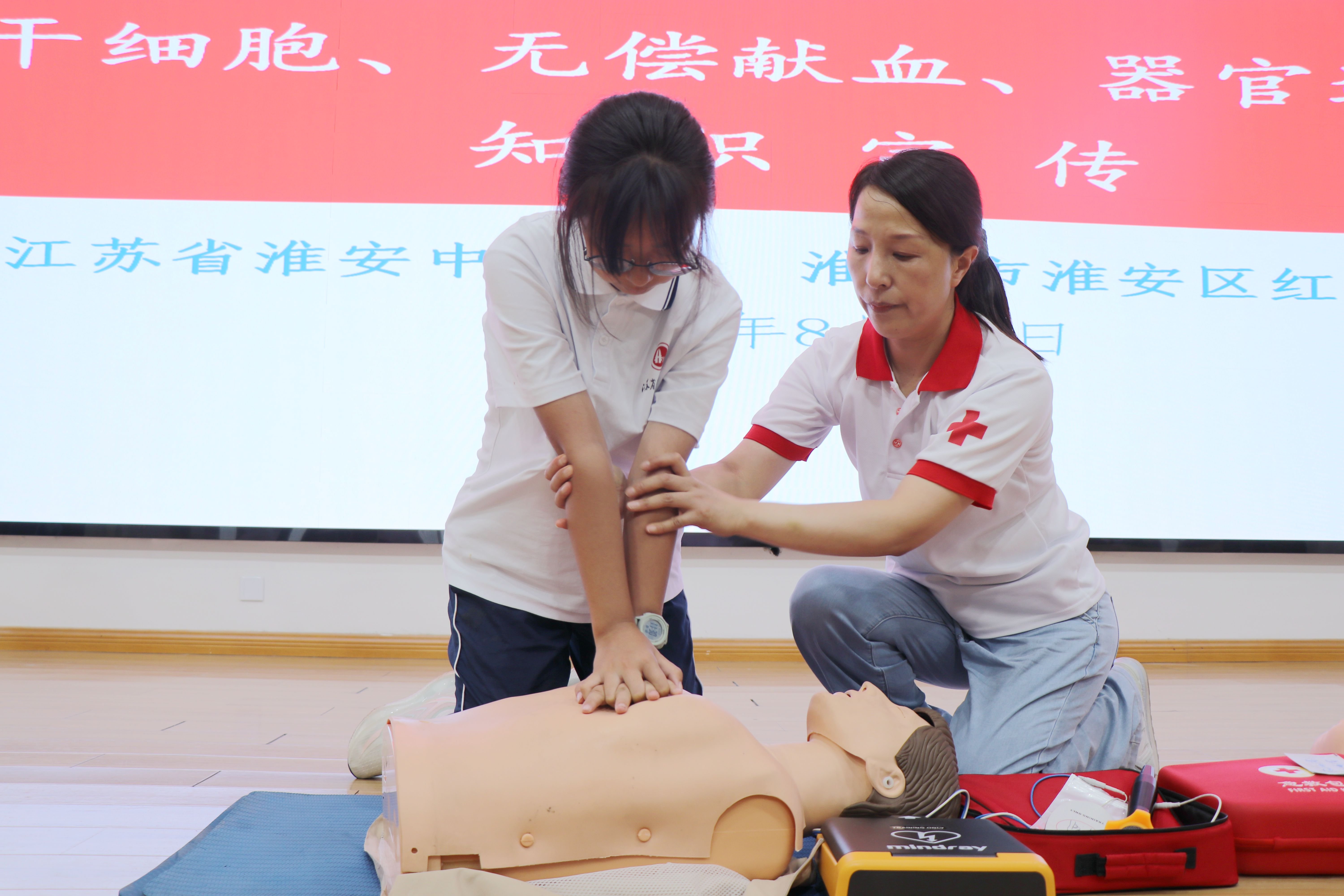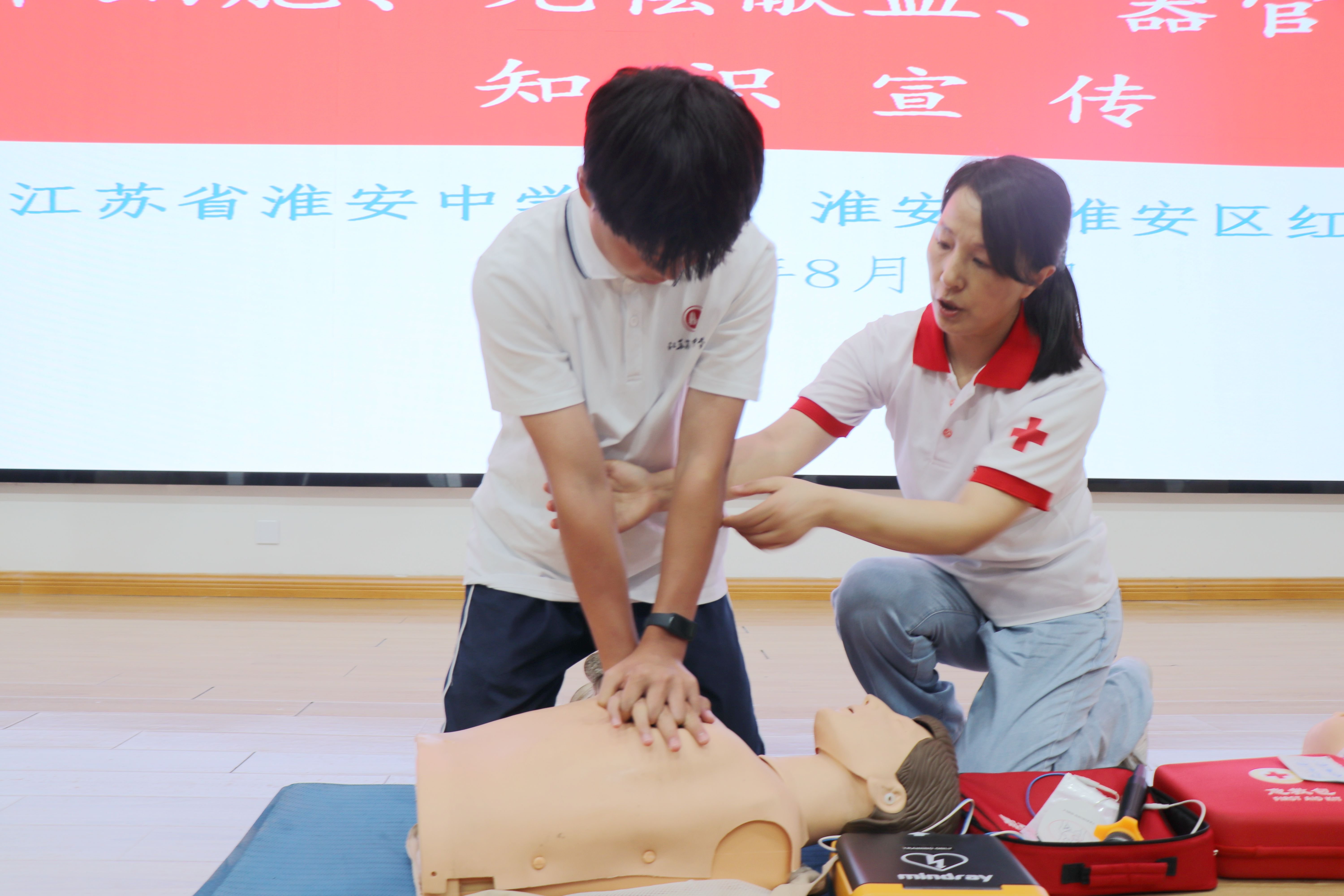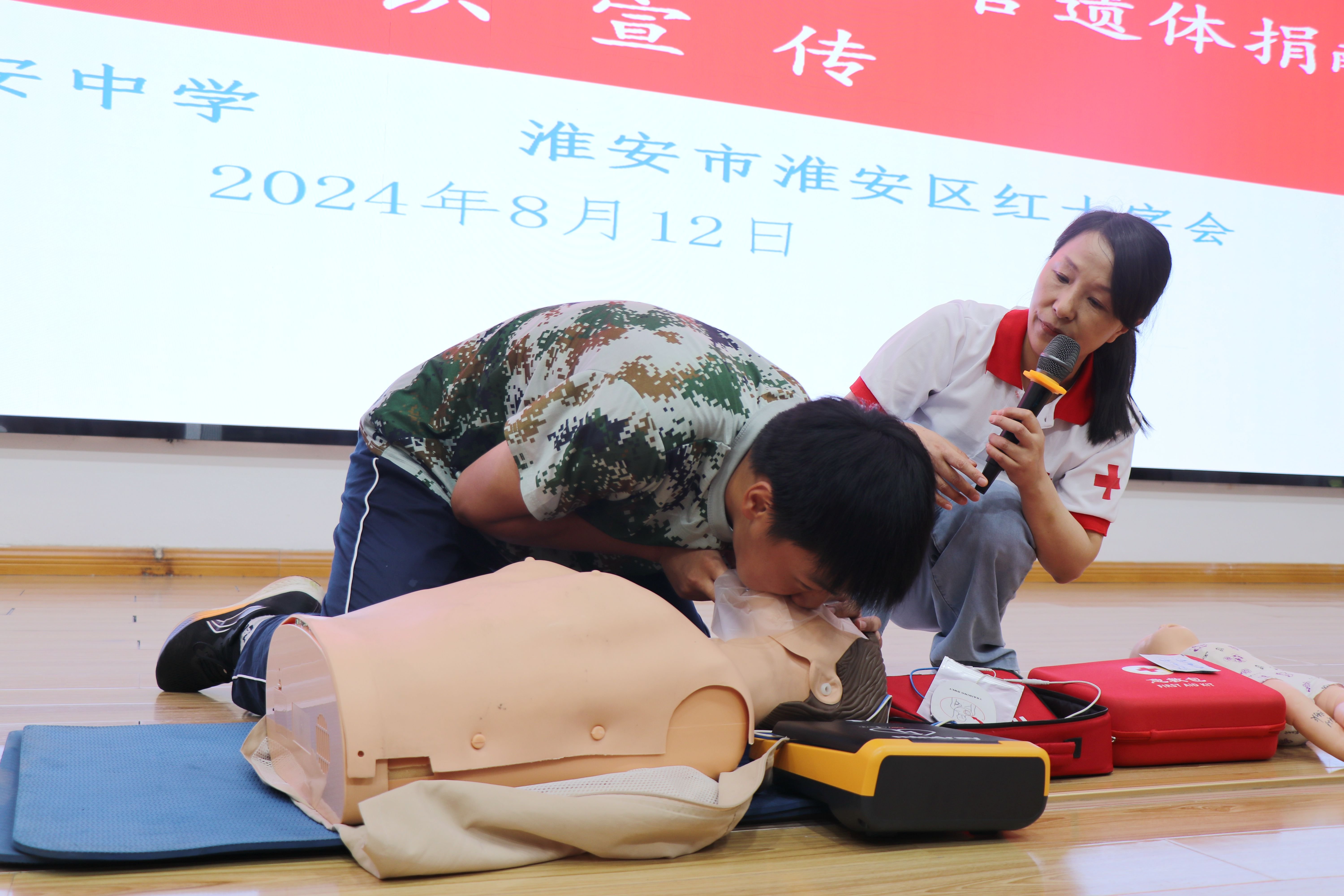 为普及应急救护知识与技能,提高学生应对突发事件的自救互救能力,8月12日上午,淮安区红十字会来淮安中学为参加军训的高一新生进行应急救护知识与技能培训。培训活动由学生工作处主任助理赵永辉主持。