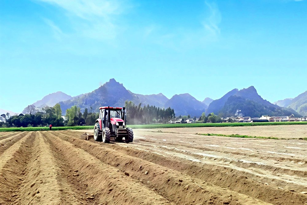河池市烟草专卖局推广机械化起垄技术。黄朝江 摄 为确保高垄深栽工作落实到位,该局推行“包村、包户、包田块”责任制,将技术责任落实到人,要求烟技员既是指导员,又是质量验收员。南丹县大厂镇农民龙明升望着烟田里整齐的新垄,脸上洋溢着笑容说:“以前起垄深浅不一、高低不齐,如今烟技员手把手指导,垄起得整整齐齐,看着心里就舒坦,今年的烟叶产量肯定差不了。” 同时,河池市烟草专卖局大力推广机械化起垄技术,针对劳动力短缺的现状,引进起垄机、旋耕机等大型农机,并组织农机手进行专题培训。目前,全市机械化起垄率已达100%,实现农机与农艺的深度融合,推动从“汗水农业”向“智慧农业”的转型。在南丹县,通过农机农艺融合,不仅提高生产效率,还减少了劳动强度,同时确保了烤烟种植的高质量发展。 物资保障“压舱石”,跑出春耕“加速度” 今年,随着种植面积增加,农机具、地膜、白云石粉等物资需求增多。河池市烟草专卖局提前布局,对全市烟用物资需求展开全面摸底,建立详尽的物资需求台账,积极与合作社协调,开辟物资调运“绿色通道”。 南丹县烟草专卖局相关部门负责人何明雄介绍:“为不误农时,物资管理员推行“24小时响应机制”,确保物资迅速送达村、户、田间。”为解决起垄期间偏远山区农机维修难的问题,该局专门成立“农机维修服务队”,组织维修队员带着配件到田间地头开展巡回检修服务,既免去烟农往返奔波的麻烦,又有效降低生产成本。南丹县中堡乡大水井村烟农谢德光竖起大拇指说:“多亏维修服务队,不然这坏了的起垄机得浪费我几天时间,还耽误移栽,真是帮了我大忙!”