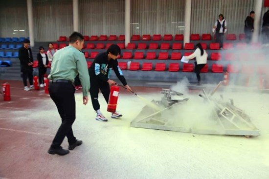 在观看了灭火器的使用演示后,部分师生现场进行了灭火操作演练。