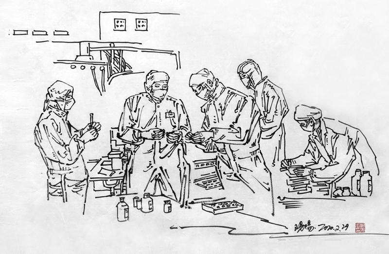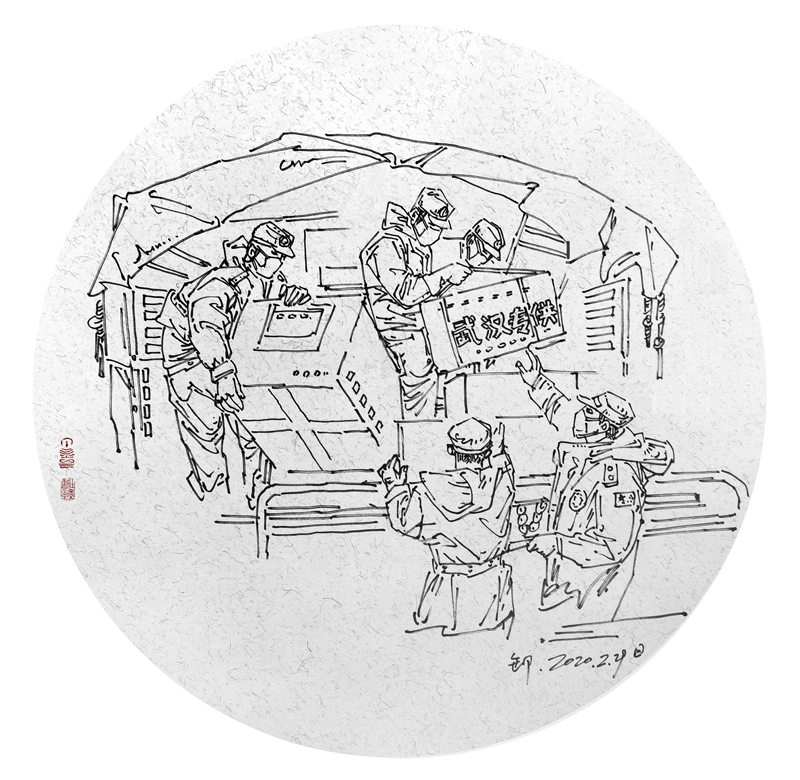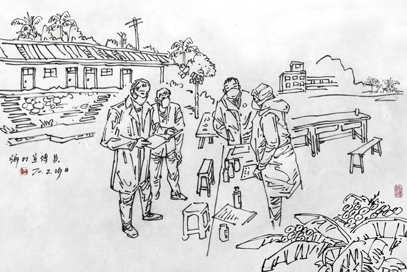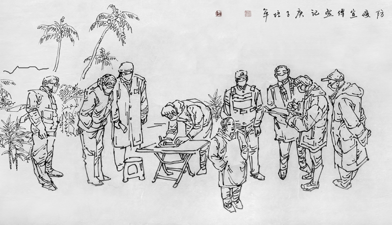1986年毕业于西安美院国画系,获艺术学士学位,中国美术家协会会员,中国画学会理事 海南省中国画学会副会长,艺术人才库专家,北京师范大学特聘教授、硕士生导师。 今年春节以来,我们宅家不出,但"位卑未敢忘忧国",所画就是对身边那些平凡的人所做的不平凡的事的记录,以画笔讴歌英雄们、以及那些奋战在平凡岗位上默默无闻的奉献者!以笔墨传情作"以此表达我对默默奉献者的崇敬之意。 ![]()