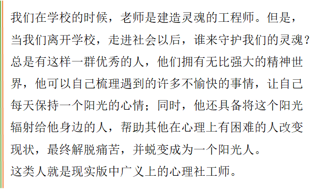 加强心理服务人才队伍建设,发展心理健康领域社会工作专业队伍。试点地区要探索鼓励和支持社会工作专业人员参与心理健康服务的政策措施,开发心理健康服务相关的社会工作岗位......