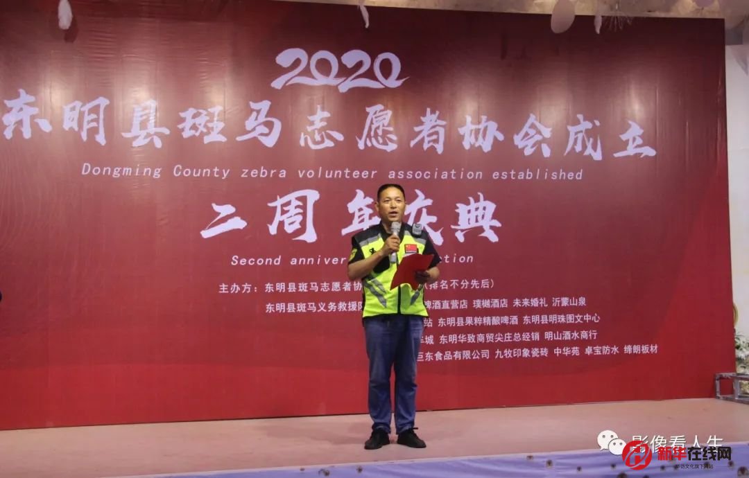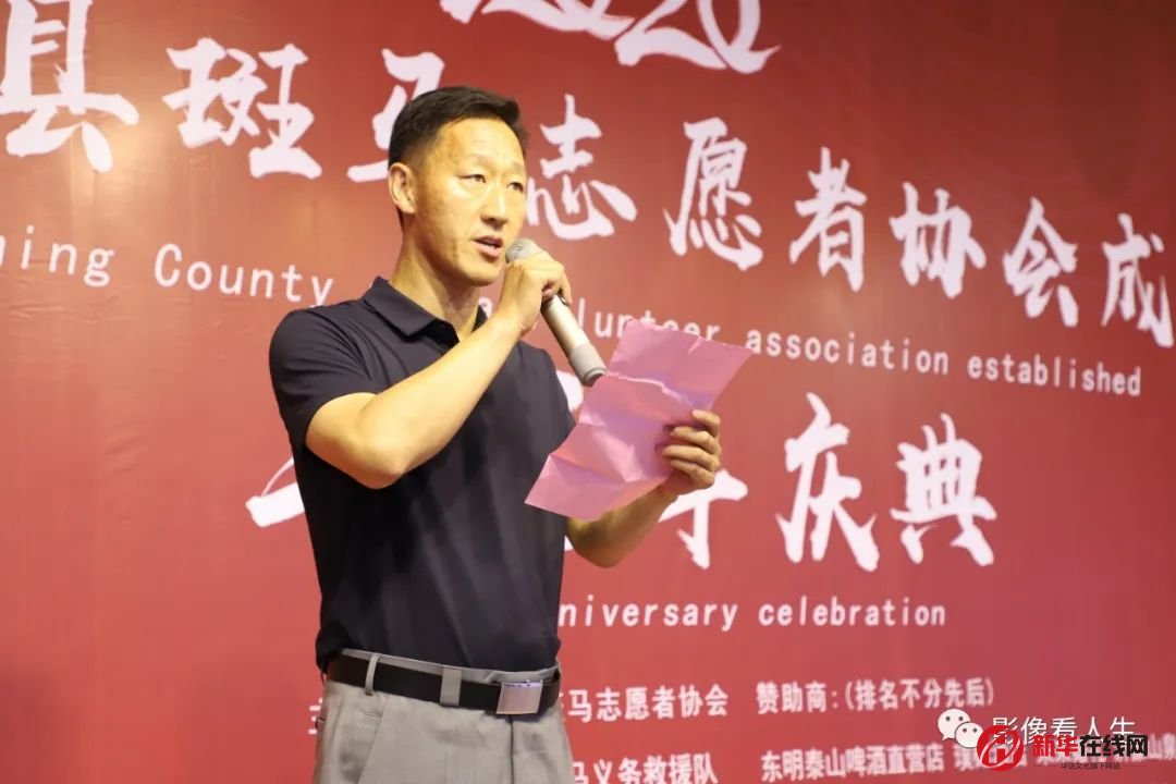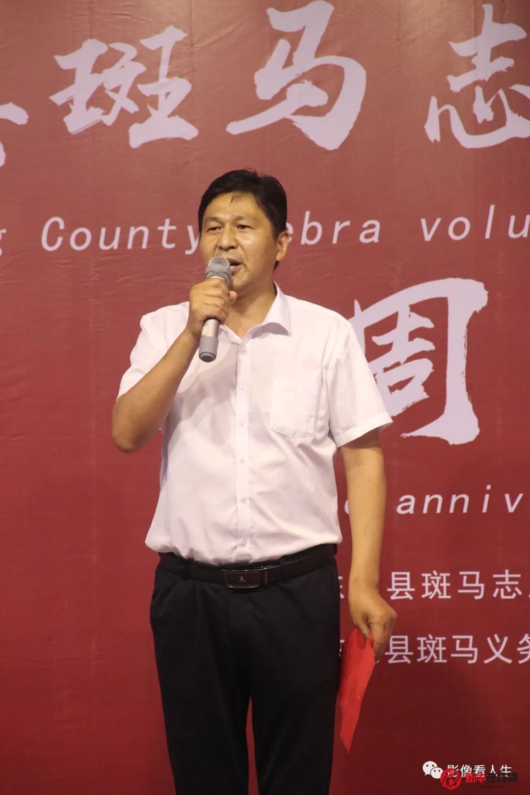 东明县斑马志愿者协会大队长 王雨增在致辞中首先向在百忙中 来到庆典现场的 各位领导、嘉宾、媒体朋友和 全体斑马家人表示问候和欢迎