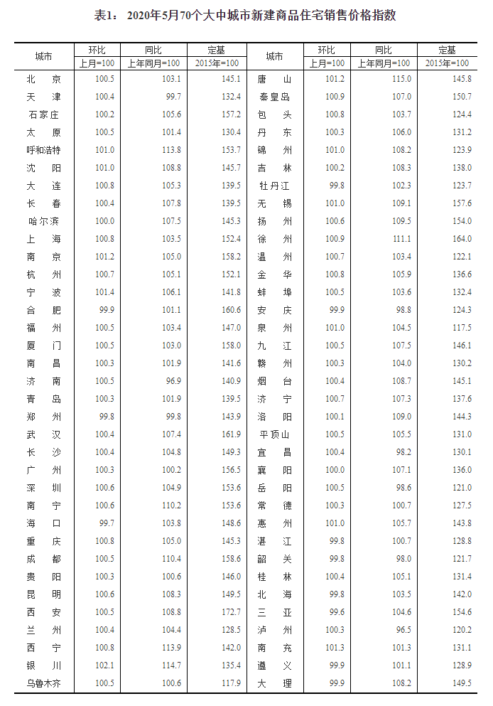 今日,国家统计局发布5月份70个大中城市商品住宅销售价格变动情况统计数据。四大一线城市新房、二手房价格环比均上涨,北京二手房领涨全国。 根据统计局数据显示,在刚过去的5月份,全国70座大中城市中,有57座城市新建商品住宅售价指数环比上涨,环比4月的50城增加了7个城市,一线城市中上海新房价格环比上涨0.8%,深圳、北京、广州分别上涨0.6%、0.5%和0.3%,银川以2.1%的幅度领涨全国;哈尔滨、襄阳环比持平;环比下降城市数量达到11个,三亚以0.4%的幅度领跌。 二手房价格方面,相较于4月26座城市环比下跌的形势,5月二手房价格下跌范围缩小,共有22座城市二手房价环比下降,牡丹江以1.5%的幅度领跌全国;哈尔滨、济南、长沙、重庆、吉林、金华、襄阳等7城二手房价格环比持平;还有41座城市环比上涨,深圳、上海、广州分别上涨1.6%、0.6%和0.4%,北京更是以1.8%的涨幅领涨全国。 此外,70座城市中,共有9座城市新房、二手房环比均下降,其中包括郑州、海口、牡丹江、安庆、湛江、韶关、北海、三亚和遵义;共有39座城市新房、二手房环比均上涨,分别是北京、沈阳、大连、长春、上海、南京、杭州、宁波、福州、厦门、南昌、广州、深圳、南宁、成都、昆明、西安、兰州、西宁、银川、乌鲁木齐、唐山、秦皇岛、包头、丹东、无锡、扬州、徐州、温州、蚌埠、泉州、九江、赣州、济宁、洛阳、平顶山、岳阳、惠州和桂林。 四个一线城市新房二手房价格环比均上涨,上海、深圳、北京、广州新房价格环比分别上涨0.8%、0.6%、0.5%和0.3%,北京、深圳、上海、广州二手房价格环比分别上涨1.8%、1.6%、0.6%和0.4%。