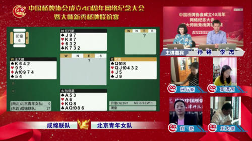 桥牌专属微信表情包 当天还举办了大师新秀桥牌联谊赛,北京青年女队、江苏太仓队两支新秀队伍挑战由中国桥牌协会特邀副主席与世界冠军搭档而成的大师队,中国桥牌特级大师孙铭、李杰联袂解说。经过12副牌的比拼,最终由王大德、刘艳、陈继、福中组成的成绵联队战胜了郝孟琦、任行斯、王任飞、张语菡所在的北京青年女队。另外一场江苏太仓队的施紫晴、华张妍、赵佳楠、王欢赵乐同样不敌桂生悦、王文霏、陈胜洪、王南组成的吉利联队。四支队伍在线交流,既是一次年轻选手向前辈学习的机会,也是桥牌后起之秀的风采展示,彰显桥牌魅力,传承桥牌精神。