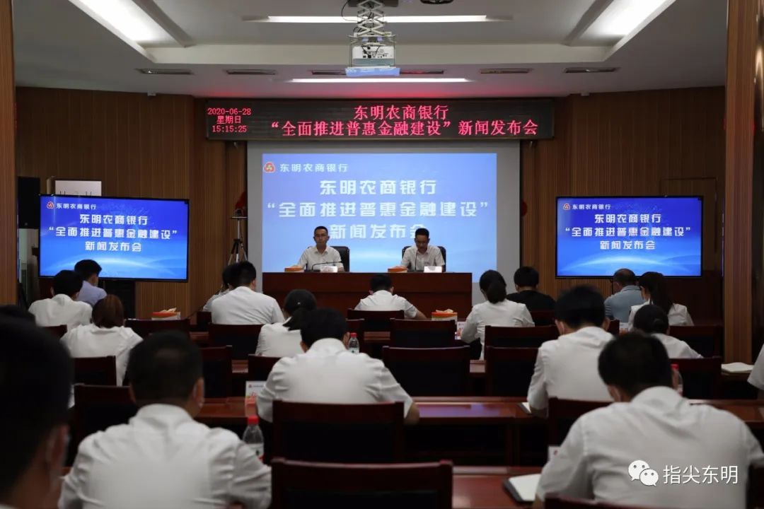 6月28日下午由东明农商银行主办的全面推进普惠金融建设新闻发布会在总行八楼会议室举行。东明政府网、东明县电视台、东明在线、东明圈、东明之声、指尖东明等多家新闻媒体参加。