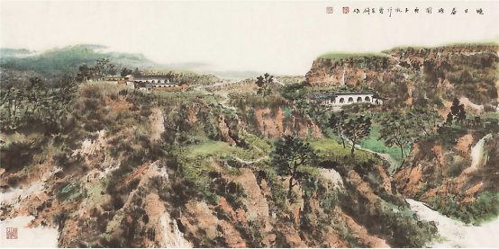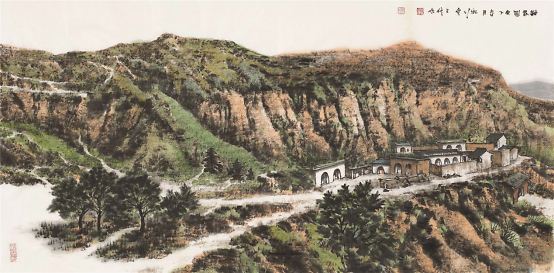 这种实景式的山水肌理效果,是李呈修长期于实地写生与深度体验生活中不断摸索与实践的重要成果之一,长久以来以“贴近现实、注重生活”为创作主旨的李呈修,将“长征式写生”贯彻得尤为深入,他不断深入山区、大漠、高原实地写生,深入古镇、乡村、农户体验生活,在不断扎实地积攒着艺术养分和拓新的基础,大胆地将色彩、造型、速写等绘画功底优势应用其中,在强化技法的同时,最终在实景写生中摸索与提炼出独立的表现手法与绘画语言,其间过程非坚苦卓绝而不可得。李呈修这种生活与创作紧密结合的方式要求其要比常人付出更多的努力与精力,要真正意义上的“行万里路”。即便是在传统春节阖家团聚的日子里,李呈修常会独自一人奔赴黄土高坡与深入偏远山区,可想而知创作条件的艰苦,而他正是在这种艰苦的条件中磨练出刻苦的精神,并将这种精神自然而然地浇铸于创作中,于是我们得以在其呈现的实景山河中,轻而易举地感受到那扑面而来的壮美情怀与坚毅气质。