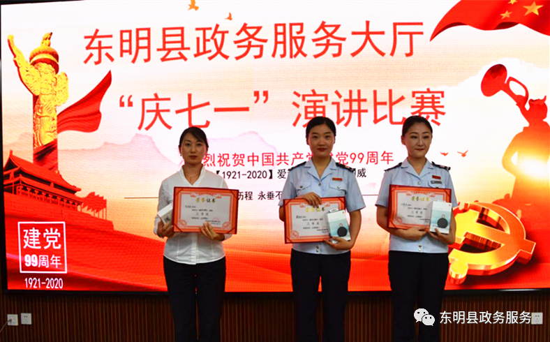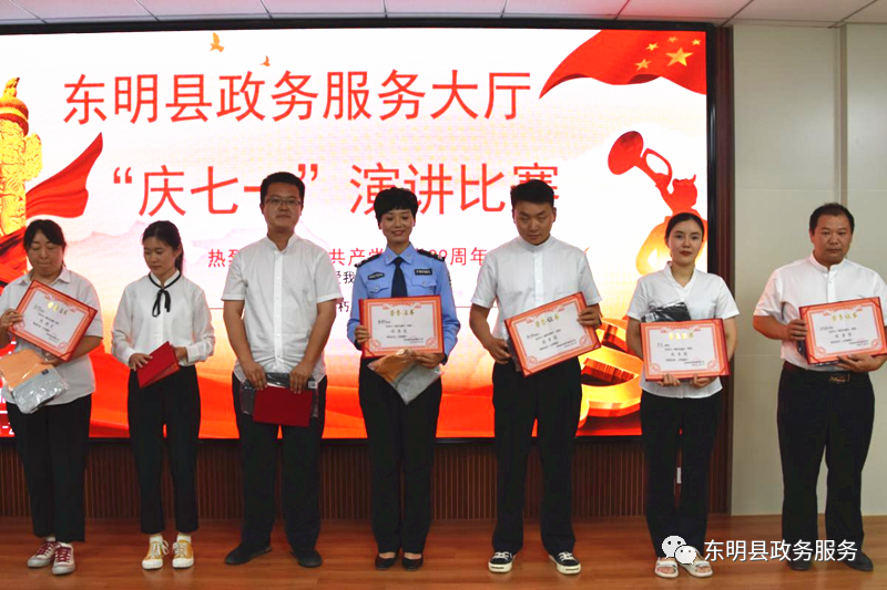 经过激烈角逐,东明县行政审批服务局傅瑜演讲的《我们的十二时辰》荣获了“一等奖”;郝英杰、张惠娜荣获了“二等奖”;税务局的万洋冰、杨莹珺和不动产服务中心的史亚敏荣获了“三等奖”;卢洁、张凯、段建丽等荣获了“优秀奖”。