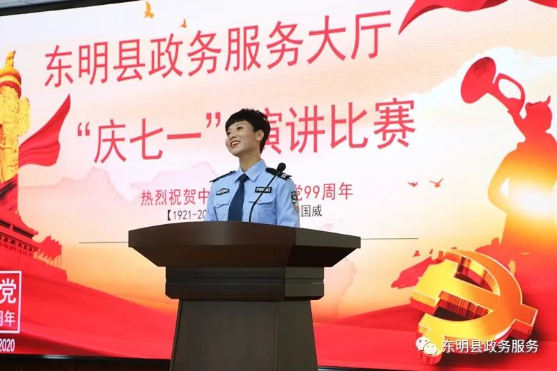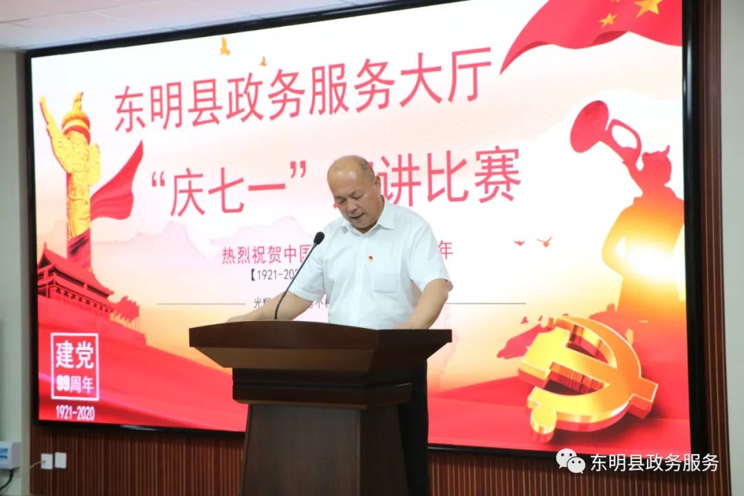 为热烈庆祝中国共产党诞辰九十九周年,弘扬革命传统,传承红色精神,东明县政务服务大厅在八楼会议室举办“庆七一”演讲比赛。