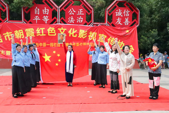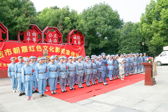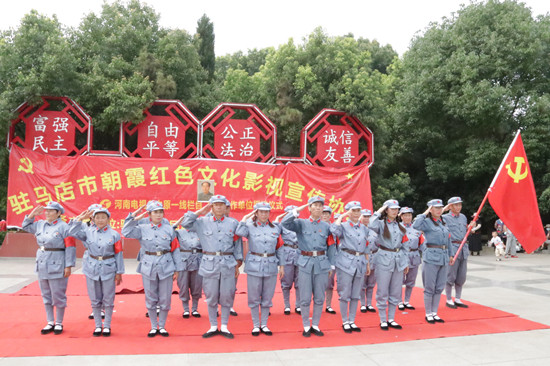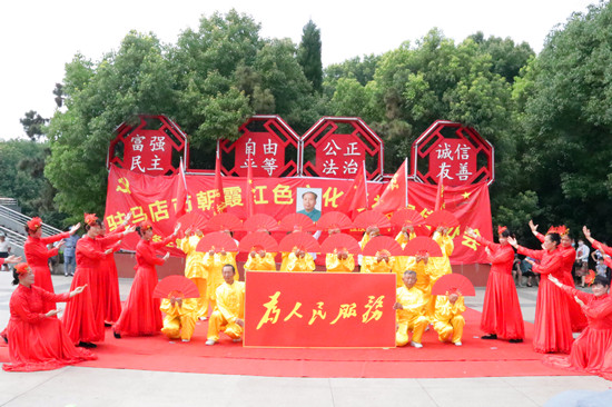 7月1日,河南驻马店市“朝霞红色文化影视宣传协会”和“东望传统文化雷锋志愿者”联袂举行“党旗飘扬风帆劲 红歌红舞民欢腾”暨河南广播电视台《中原一线》栏目和驻马店市朝霞红色文化影视宣传协会战略合作单位授牌仪式文艺活动在市世纪广场举行。