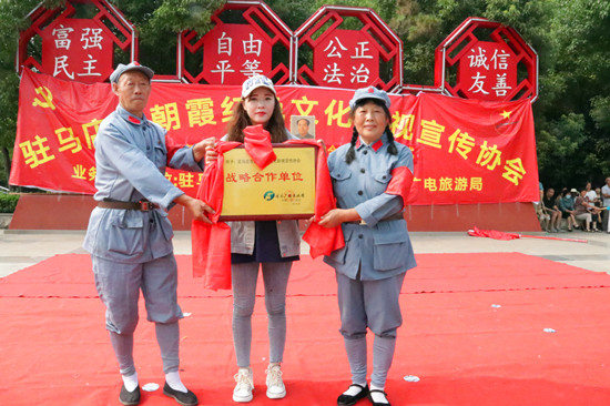 活动开始,举行了河南广播电视台《中原一线》栏目和驻马店市朝霞红色文化影视宣传协会战略合作单位授牌仪式。市朝霞红色文化影视宣传协会副会长:孙保田、秘书长谢秀荣秘书长为本次活动揭牌。