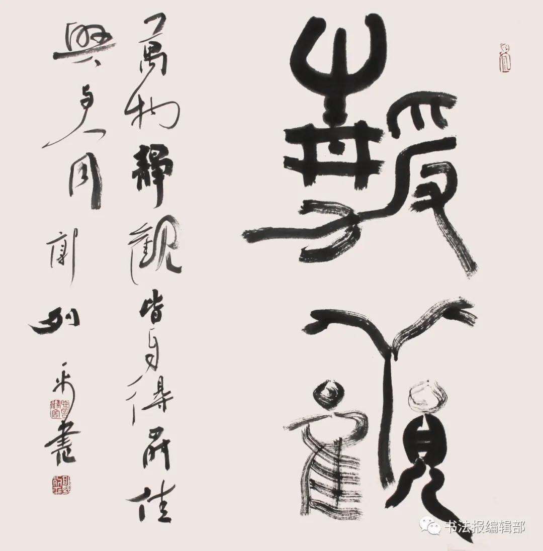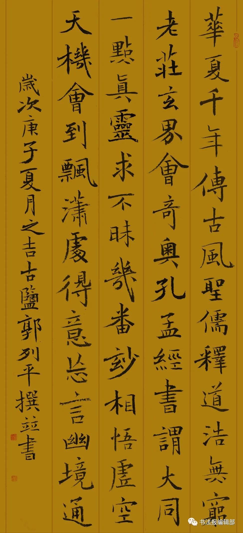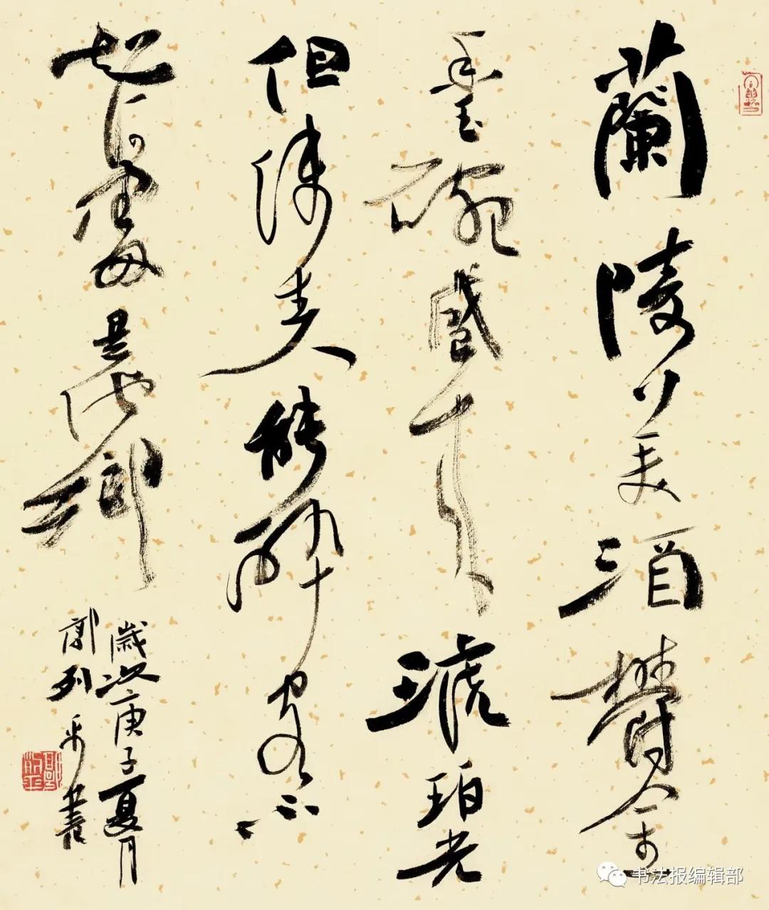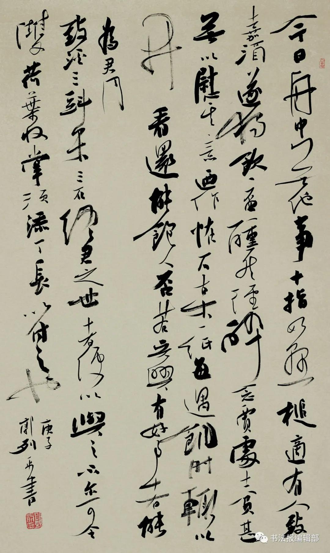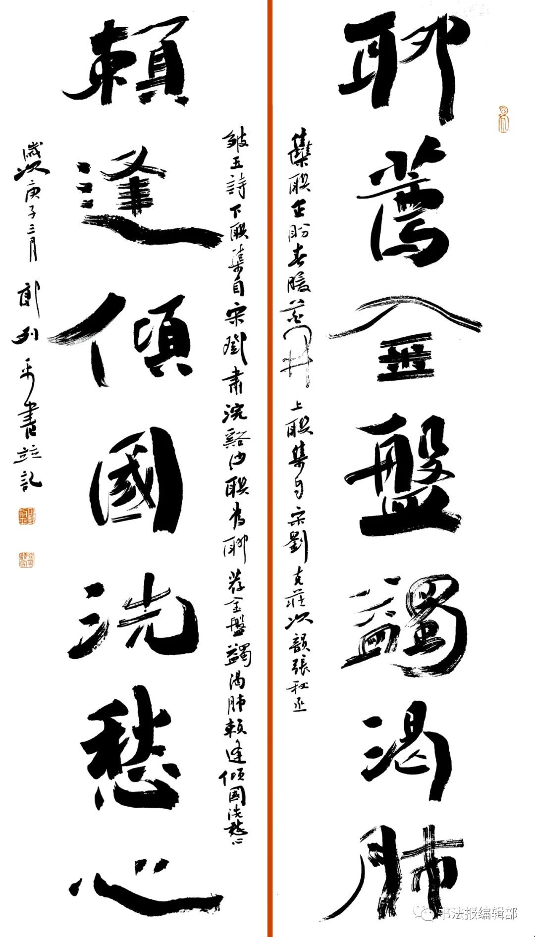 楷书自作诗小品 来如雷霆 罢如江海 ——郭列平书法艺术述略 石 松 江苏是全国瞩目的经济文化大省,也是书法大省,在这块神奇的土地上出现过成百上千的历史文化名人,各行各业不乏巨擘、泰斗式人物,这在人们的地域文化观念中早已形成共识,近年的书法更是如此,郭列平先生便是当下书法精英阶层的佼佼者。 与列平兄首次相见给人的感觉是温文尔雅、讷言敏行,颇具江南文士的灵秀俊逸之气,熟识之后谈起书法来则是侃侃而谈又谦恭有加,我想大凡君子便是如此罢。交流间他多次提笔示范,并让把笔未稳的我也一展“才艺”,我们的感情也因此得以升华。列平兄下笔迅疾,收笔沉稳,由此想到杜甫在《观公孙大娘弟子舞剑器行》中之诗句:“霍如羿射九日落,矫如群帝骖龙翔。来如雷霆收震怒,罢如江海凝清光。”这是张旭在看到公孙大娘剑器舞后从中悟出书法用笔之理,剑法迅疾之势犹如后羿射日,表现在书法运笔上便似雷霆万钧之势。后两句是说公孙大娘舞剑的气势与收剑时的端庄之态,气势如雷霆、如闪电,迅疾异常,而收剑的动作则是缓缓收起,像慢慢消失在海面的波光一般,舞剑之法深得自然之理,难道杜甫预知当代之列平兄乎? 列平兄真、草、隶、篆皆通,他的章法取势险峻,结字奇正并重,举重若轻,运笔多采用篆籀绞转之法,笔走龙蛇,变锋迅疾,更有来如雷霆震怒,罢如江海凝光之美,化瘦硬为丰腴雄浑,结体宽博、气势恢弘,骨力遒劲而又大气凛然。 张旭关于用笔也有“孤蓬自振,惊沙坐飞”之说,起笔之前,往往先蓄力后落笔,落笔时气势极为开张,力量感十足,而一旦势态开张,其所蓄之力便瞬间勃发,一如飞沙走石,雄浑恣肆,势不可挡。而列平兄落笔之前恰如禅僧打坐沉思良久,下笔则如江河决岸一泻千里,似脱缰骏马腾空而来,绝尘而去;又如蛟龙飞天流转腾挪,来自空无,复归虚旷,一种近乎癫狂的原始生命力包孕着天地之灵气,这种气势只能细细体悟而难能言表,亦如颜真卿的“刚猛雄浑、铁画银钩、力透纸背”,豪放之情跃然纸上,令人叹为观止。 虚灵与厚重是列平兄书法的又一特质。深厚的传统功力、学养与儒雅、纯厚的人格精神在其作品中表现为厚重与雄强,深厚的文化积淀、对书法的虔诚与敬畏又使得他的书法体现出江南秀士虚灵清旷的一面。虞世南在《笔髓论·释真》中说:“迟速虚实,若轮扁斫轮,不疾不徐,得之于心,应之于手,口所不能言也。”所谓的“迟速虚实”即轻重缓急,它得之于心、用之于手,是很难用言语表达出来的,也是精熟返拙后自然形成的一种手感,掌握这种轻重缓急的运笔节奏,更是他创作书法精品秀立于书坛的一个主要因素。更为可贵的是列平兄书法高古典雅,融合南北,能深深地把握时代脉搏,丝毫不受展览体、流行书风的浸染,喧嚣的书坛对他完全失去效力,他除外出拜师学艺、广泛交流外,大部分时间一如苦行僧般困守于书斋,挖掘传统碑帖、文化典籍之精髓,从中汲取营养,与古为徒,从不懈怠,因而才成就了今天骄人的成绩。列平兄自信而敏锐,书品、人品、学养完美结合,从无半点的矫饰与做作,这也正是他人格魅力的可贵之处。