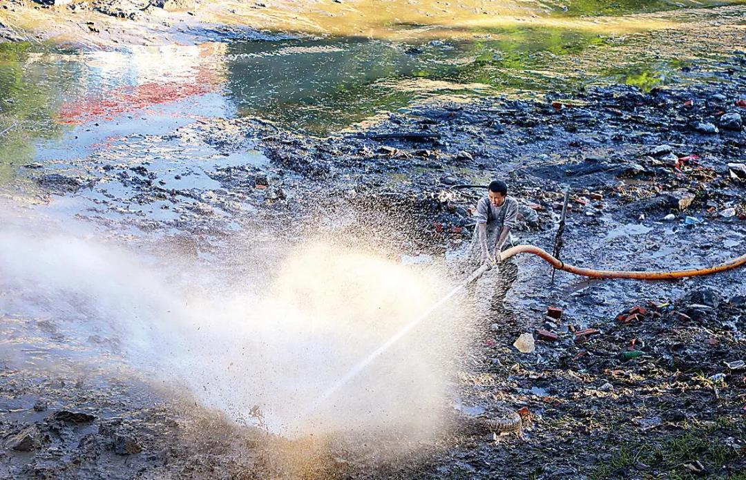 图为工作人员在为运河清淤
