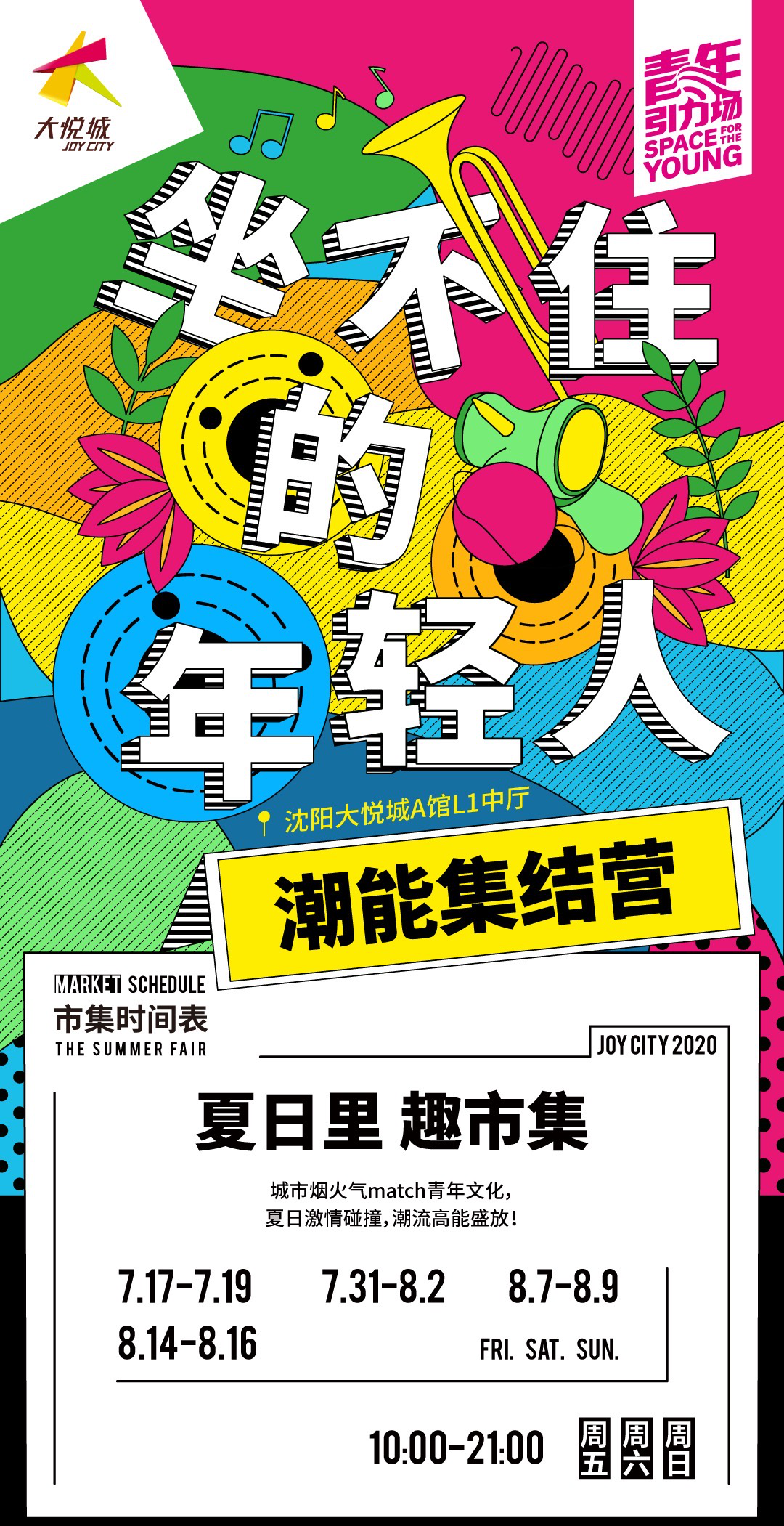 ![]() 2020年夏,沈阳大悦城召集每一位“坐不住的年轻人”打破规则,定义自我,改写潮流格局,制霸后浪街头,潮能青春,即刻一键开启! |